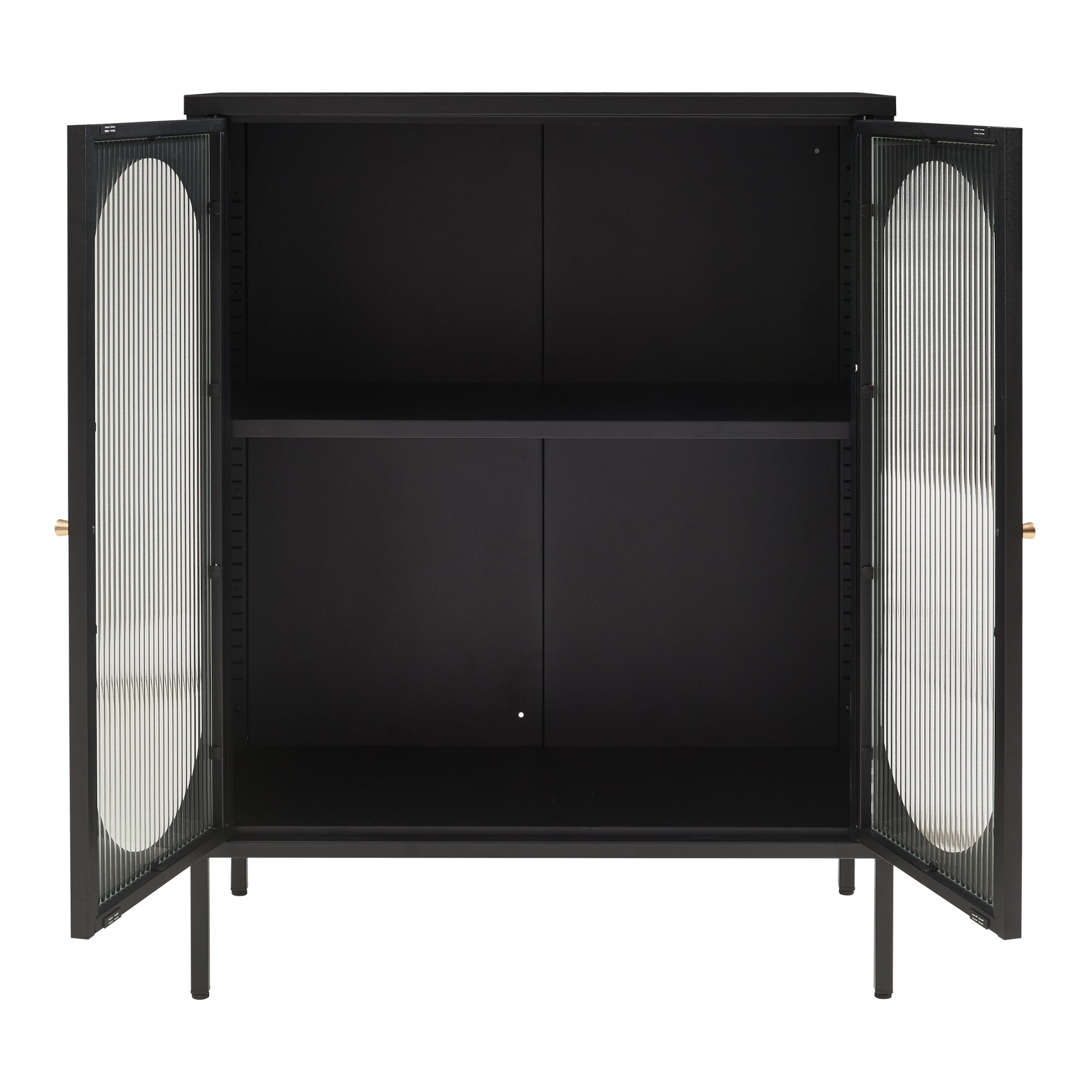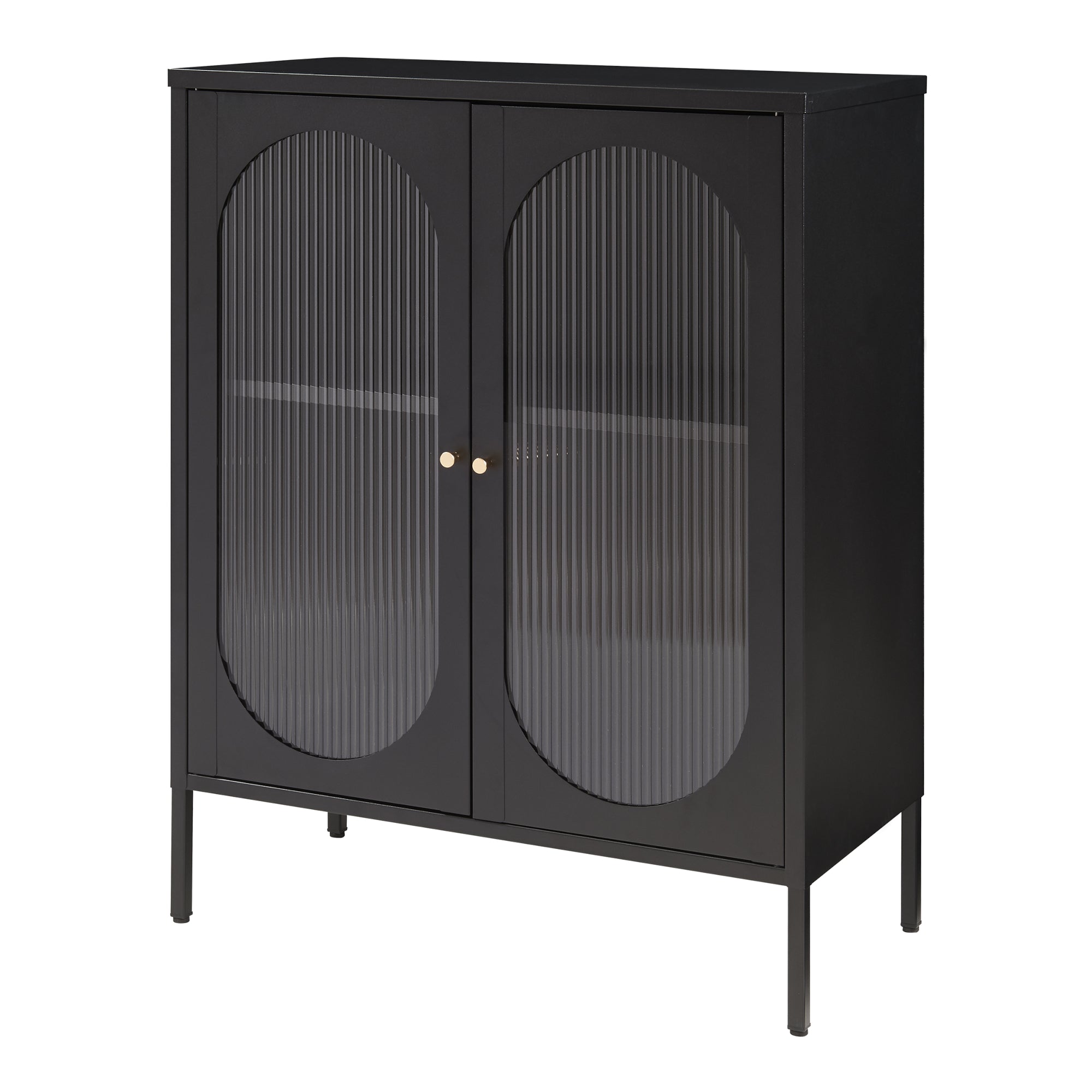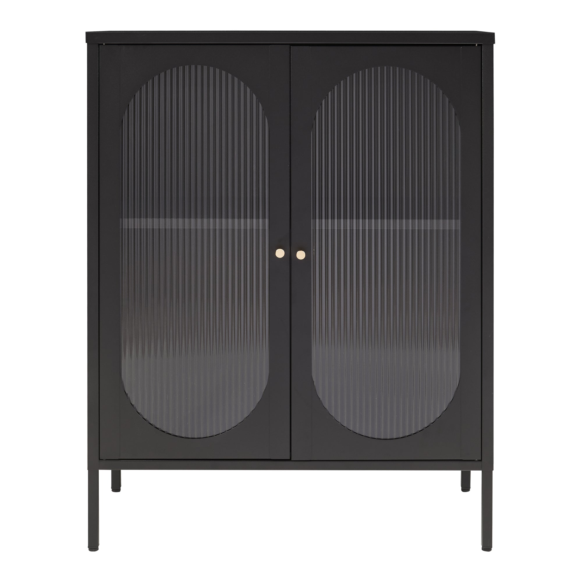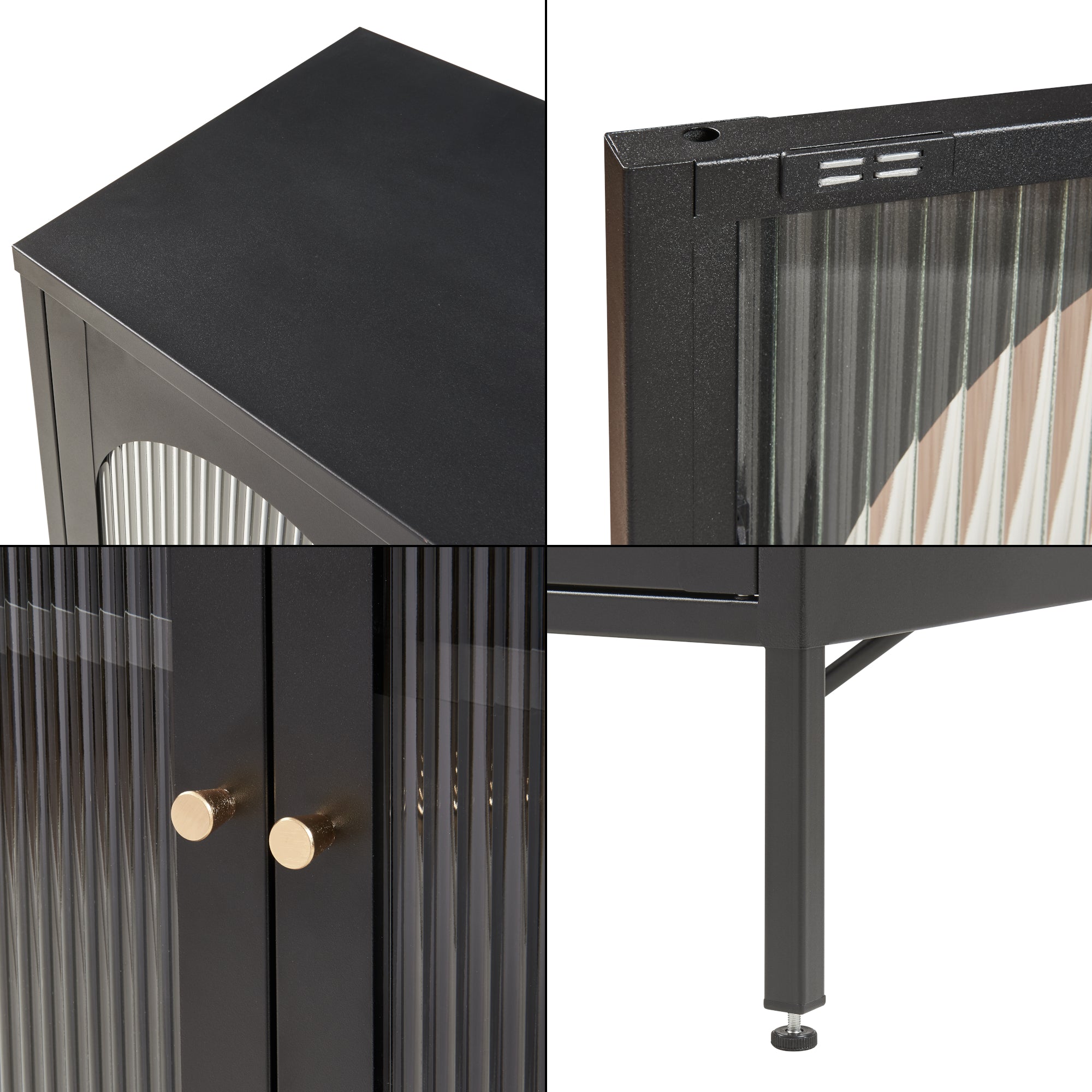 - Deux portes décoratives en verre cannelé avec poignées rondes en métal