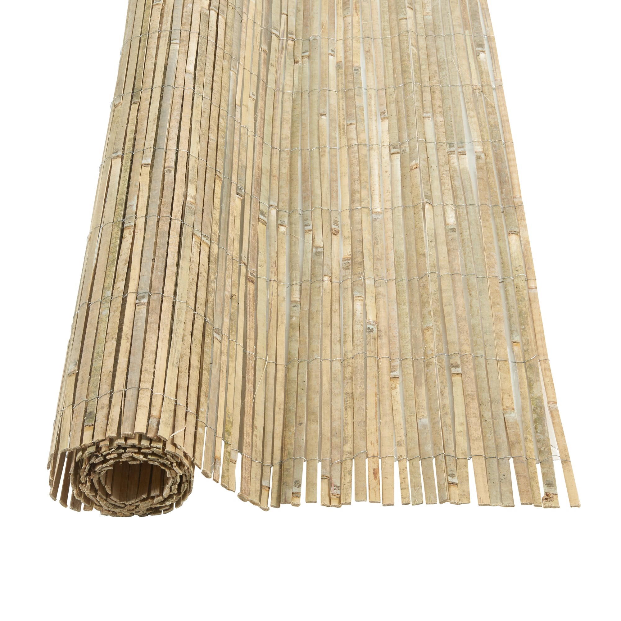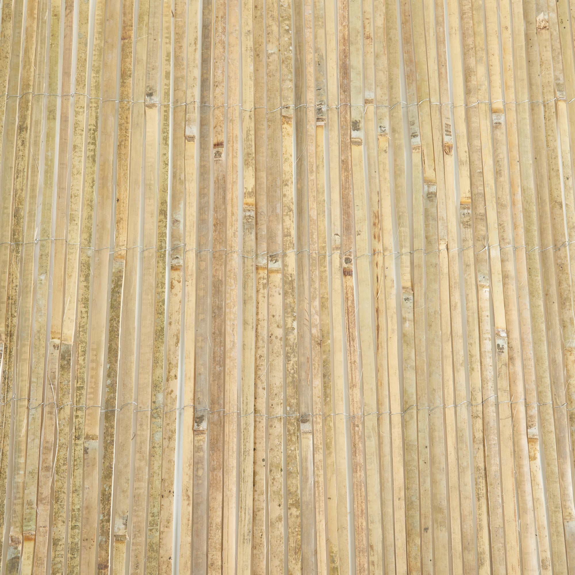Le tapis est composé de tiges de bambou naturelles et regroupées, tissées avec du fil de fer galvanisé, ce qui garantit sa longévité et sa stabilité en extérieur. Cela en fait un choix robuste et résistant aux intempéries pour tout espace extérieur.