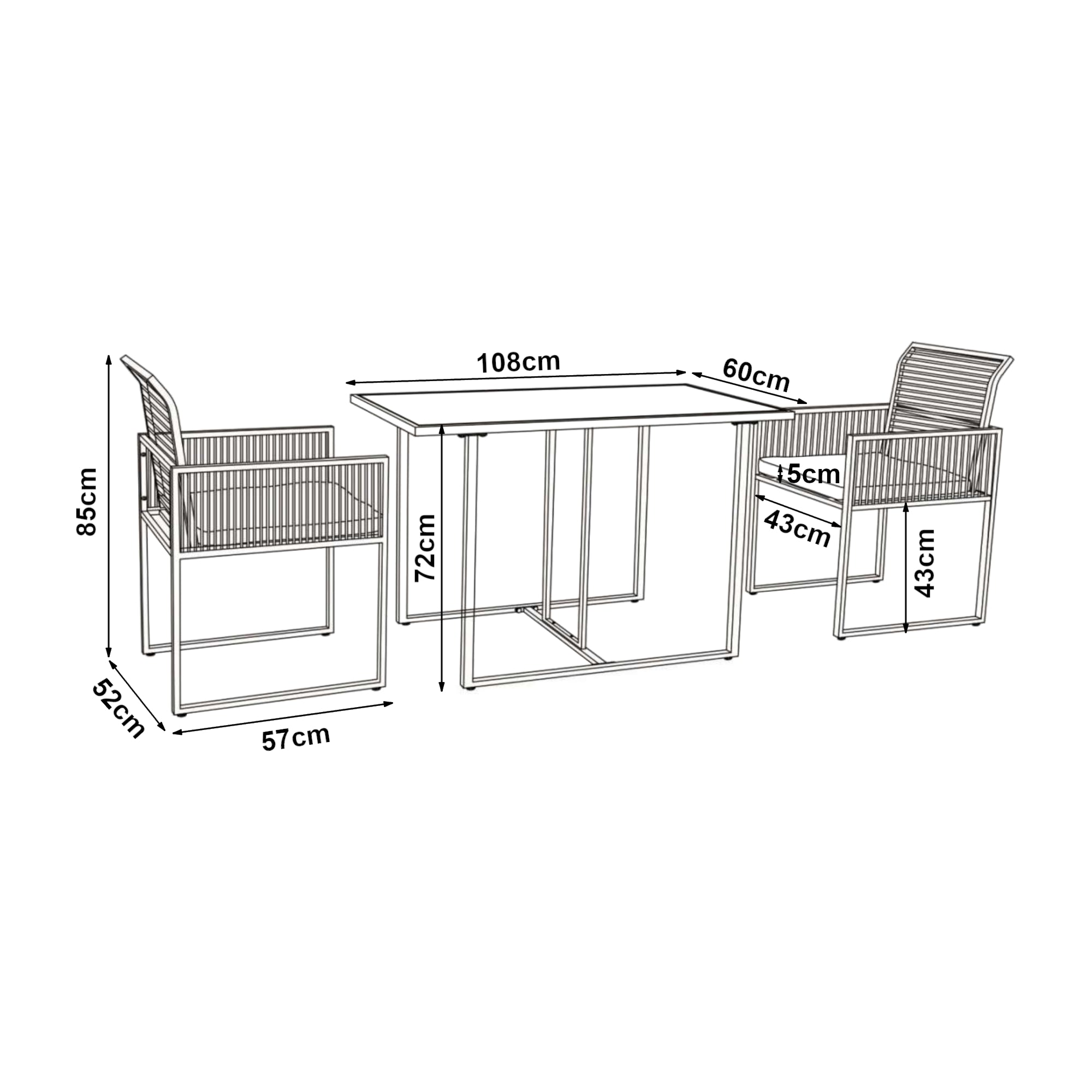 - Ensemble de mobilier de jardin en trois pièces, composé d'une table et de deux chaises