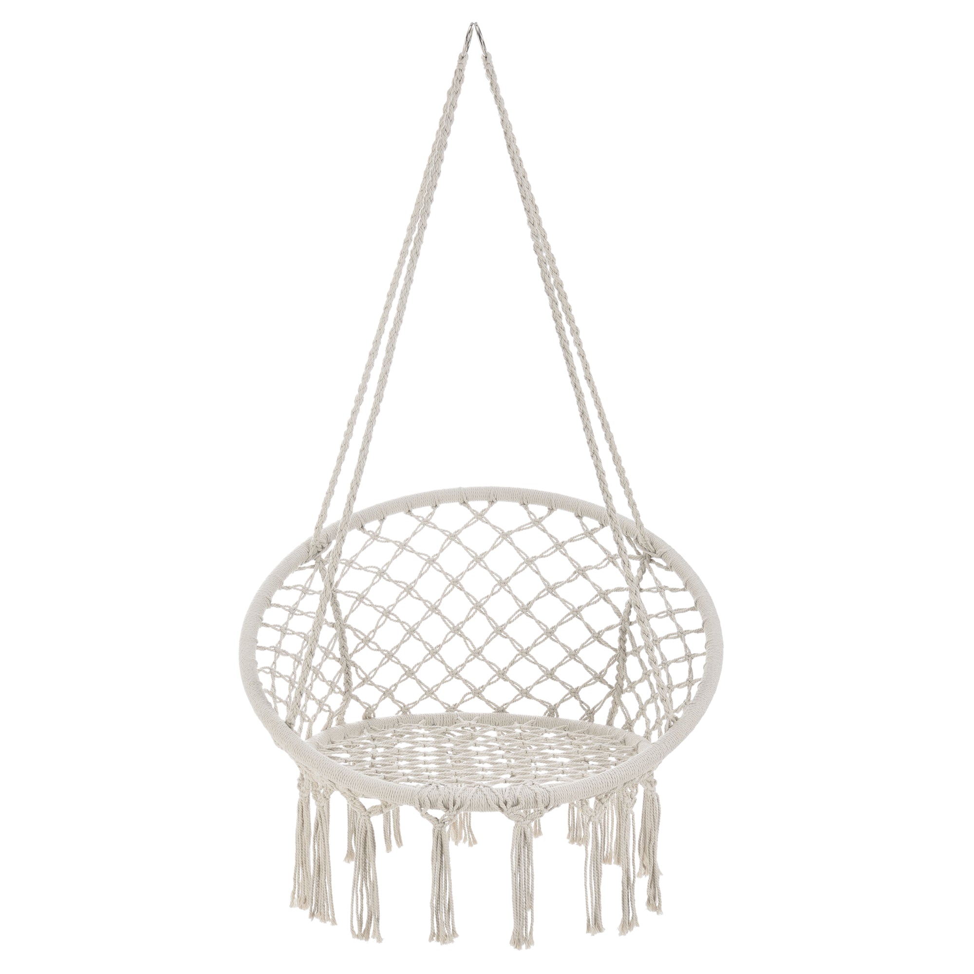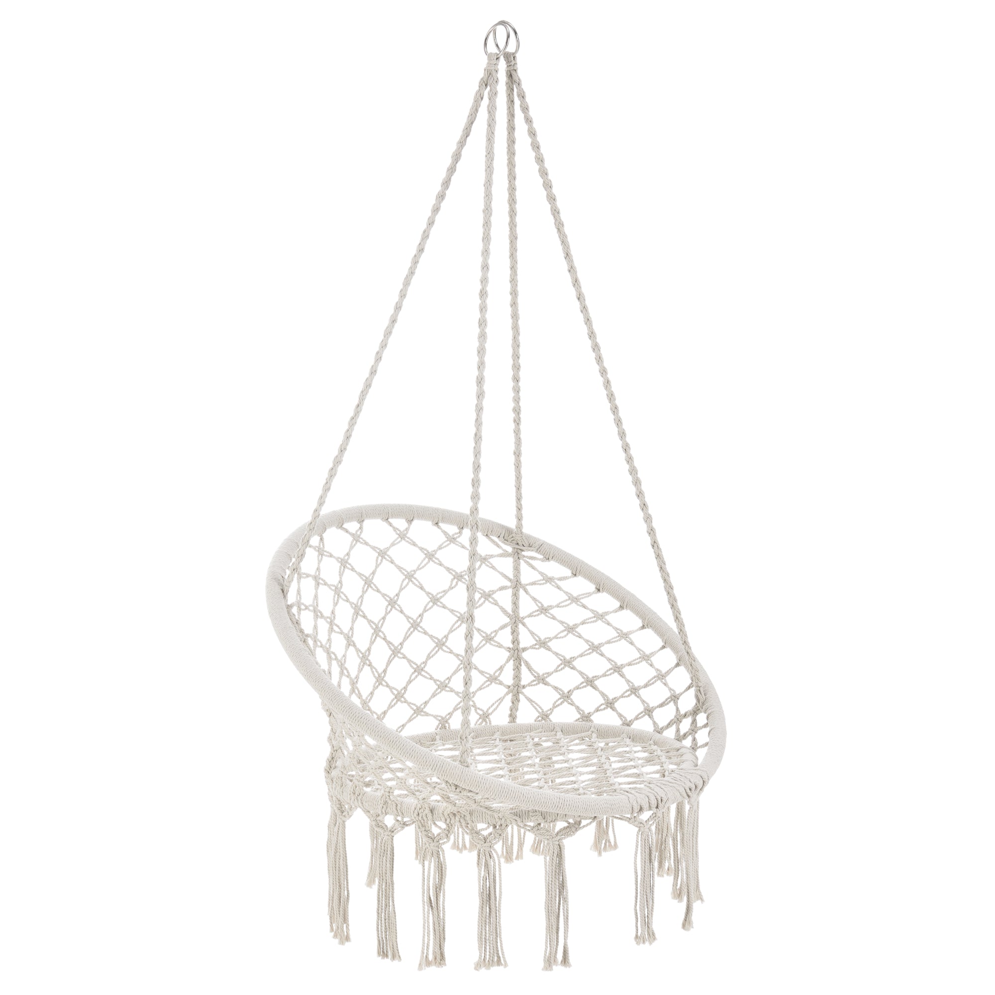 - Fauteuil suspendu relié par 4 cordes à 2 anneaux en acier
