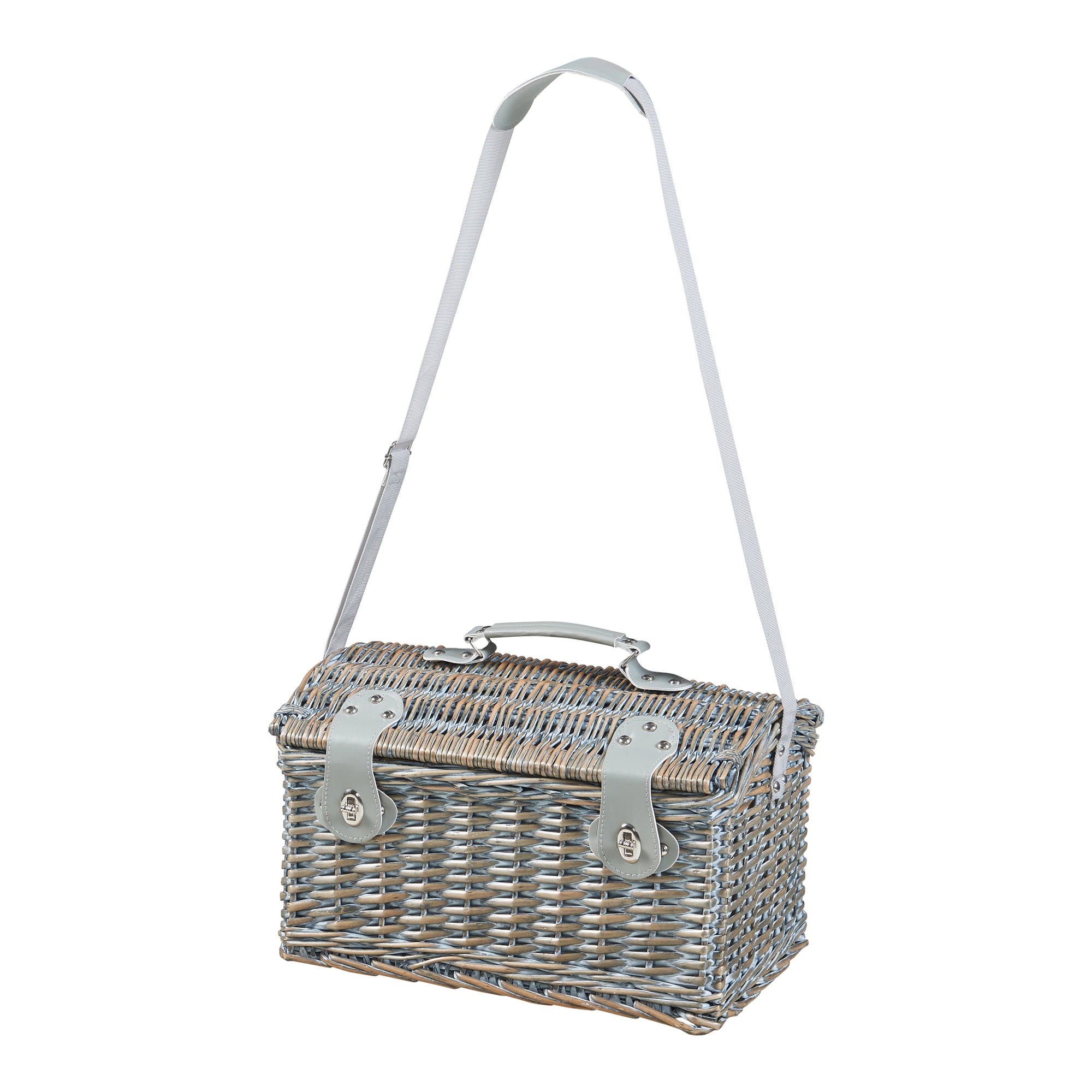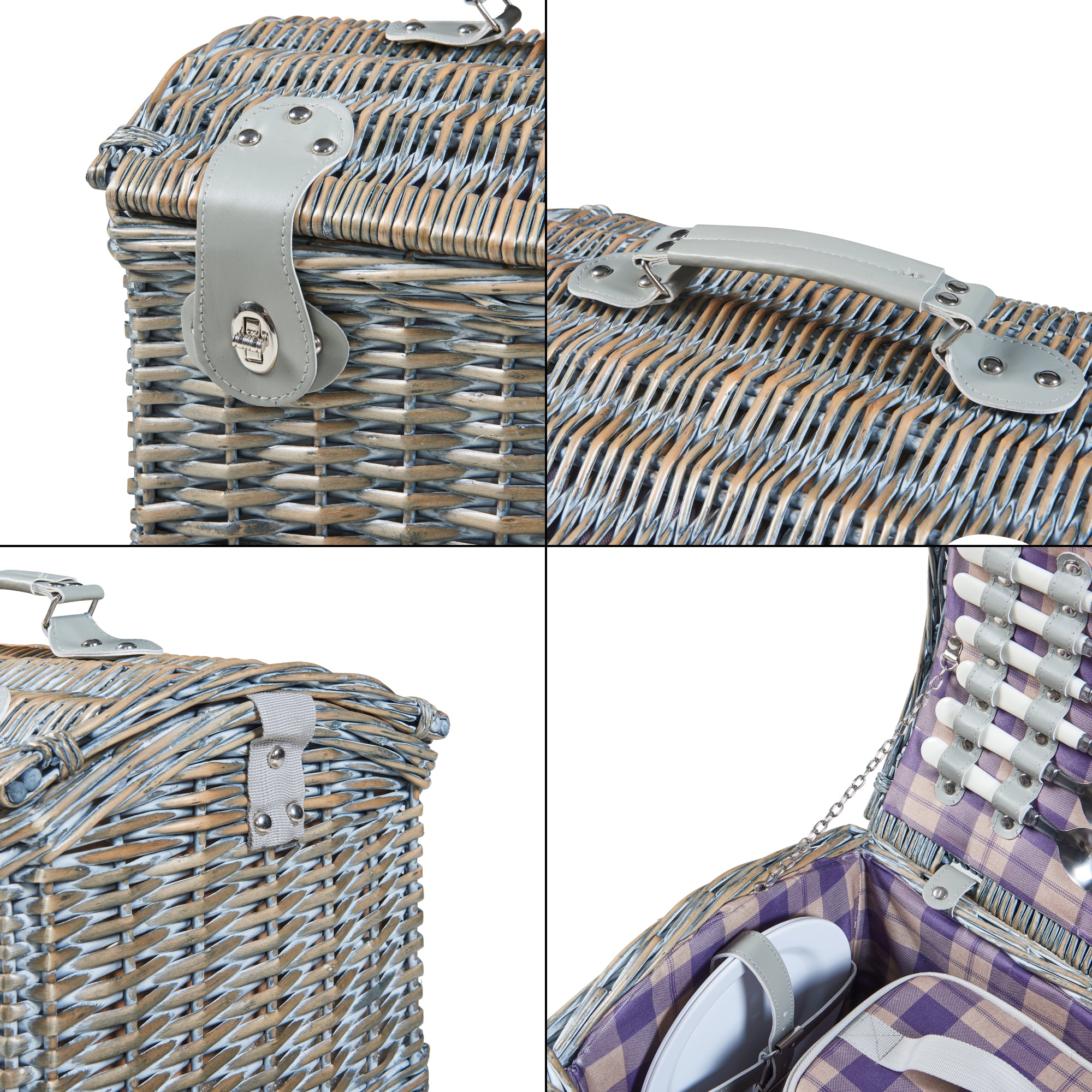 - Panier pique-nique pour deux personnes en osier et tissu à motifs