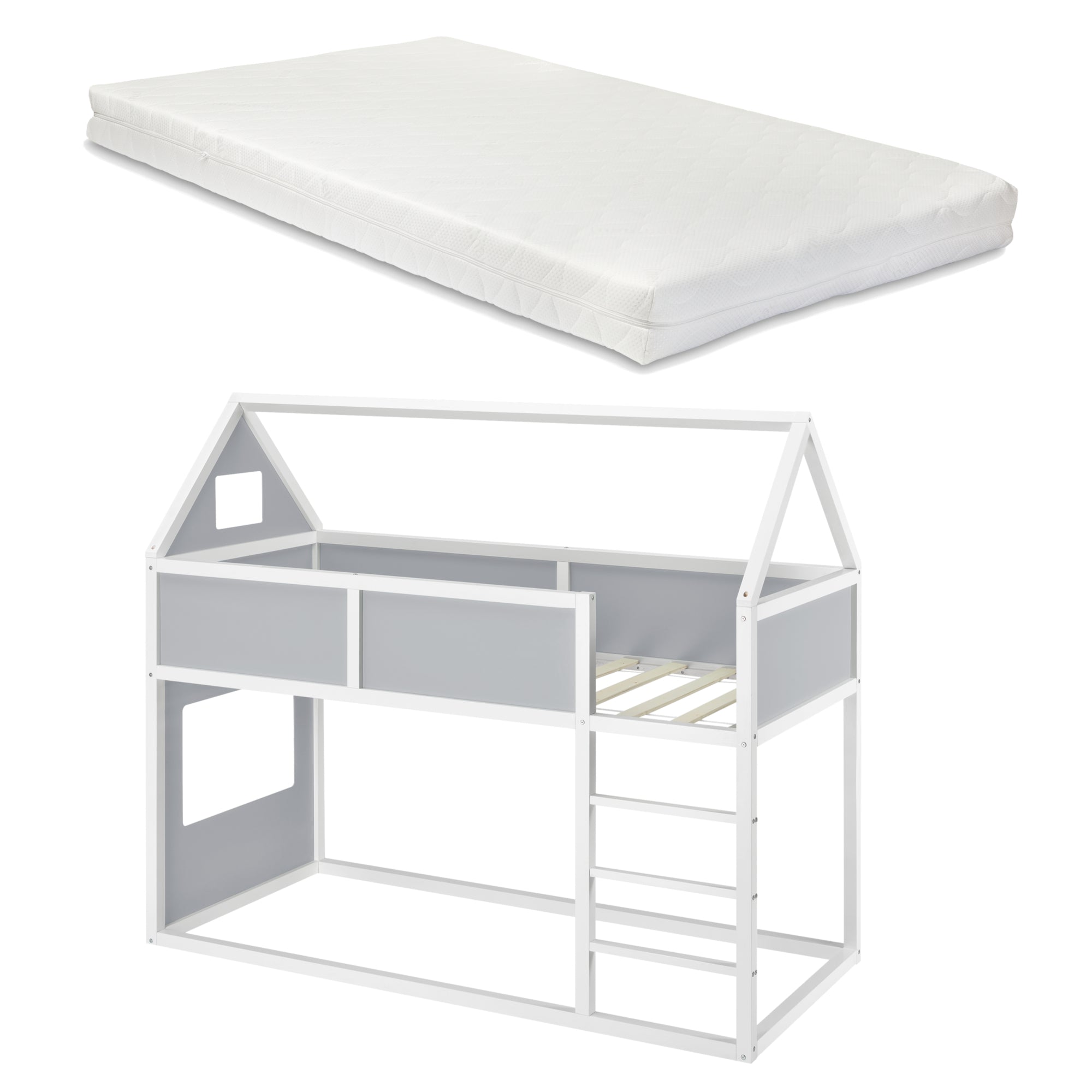 - Lit mezzanine enfant en forme de maison avec échelle