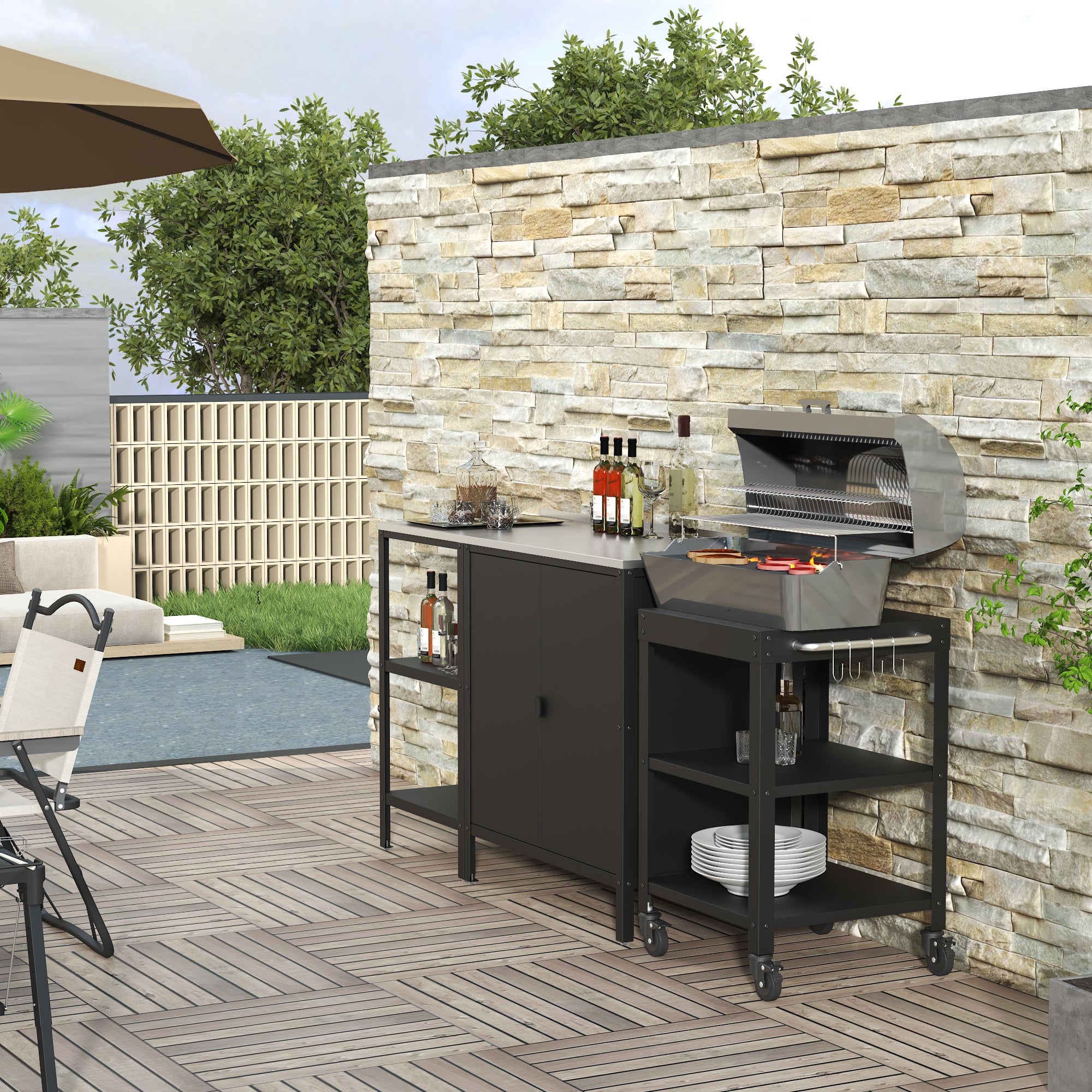 - 1 x chariot de service d'extérieur