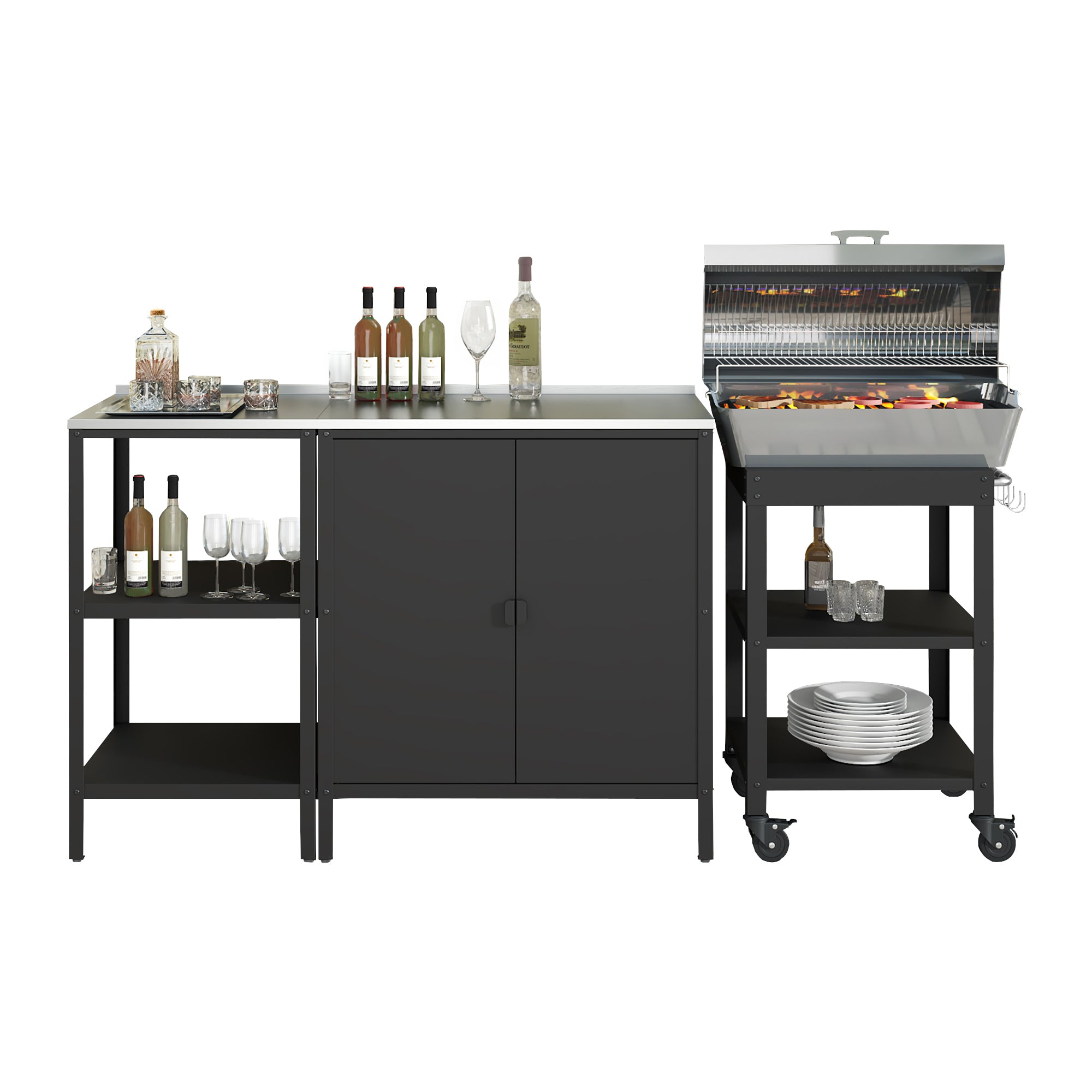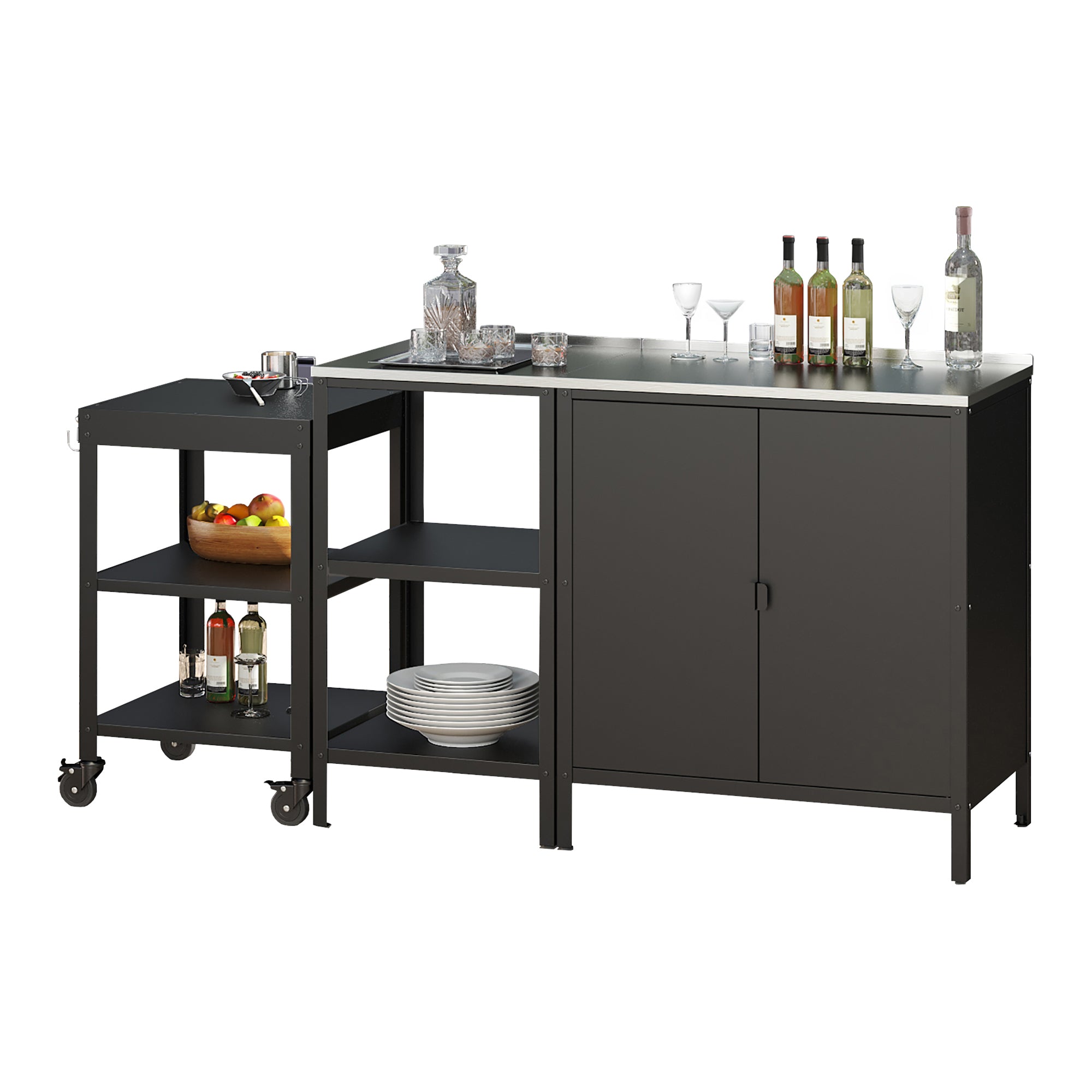 - Composé d'une armoire, d'une étagère et d'un chariot de service