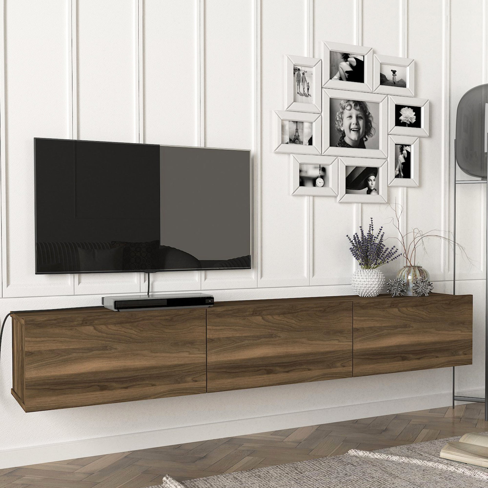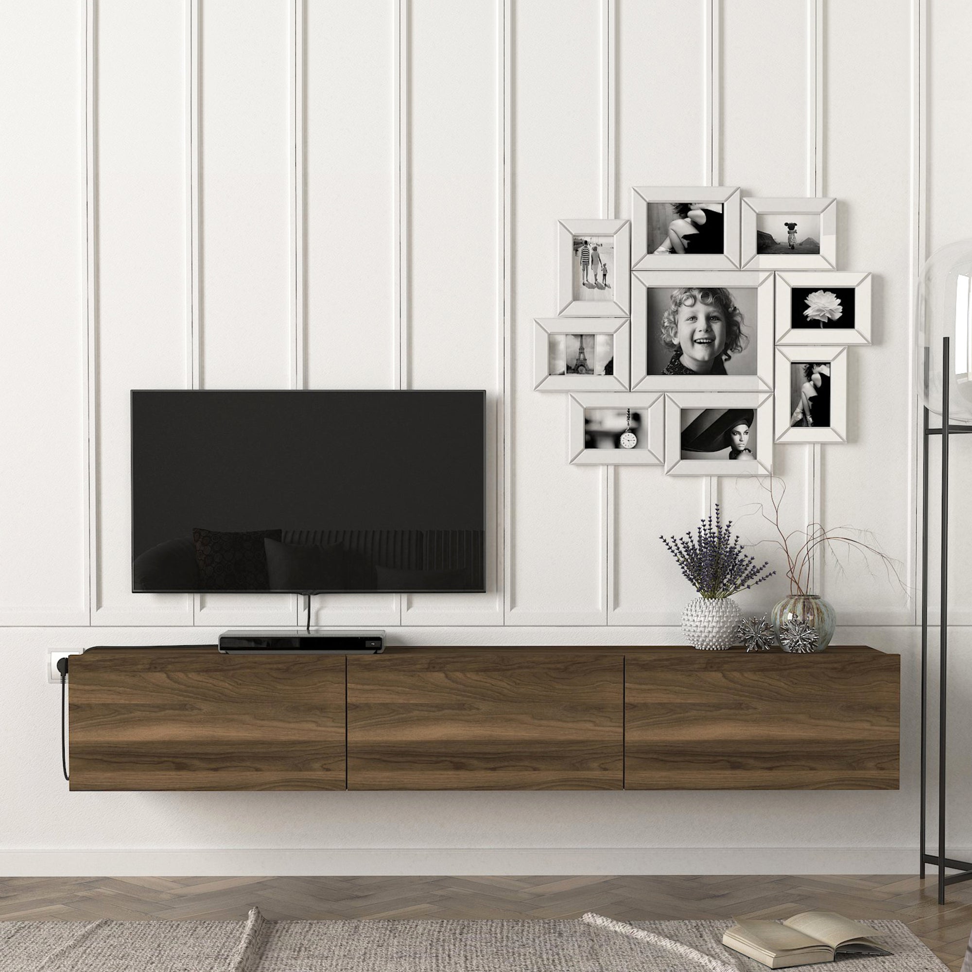 Notre console télé suspendue se monte facilement au mur, ajoutant ainsi un style raffiné à votre salon ou coin divertissement. Les 3 compartiments fermés permettent de garder votre intérieur bien organisé en offrant un espace de rangement supplémentaire pour vos appareils multimédias, livres et autres articles. Ce meuble de rangement polyvalent s'adapte parfaitement à tous les espaces de votre maison.