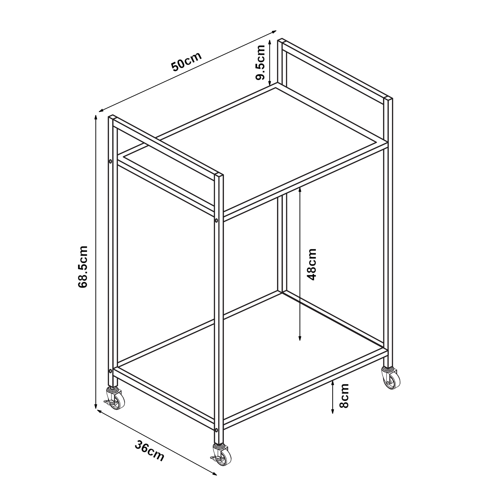 - Total (H x L x P) : 68,5 x 50 x 36 cm