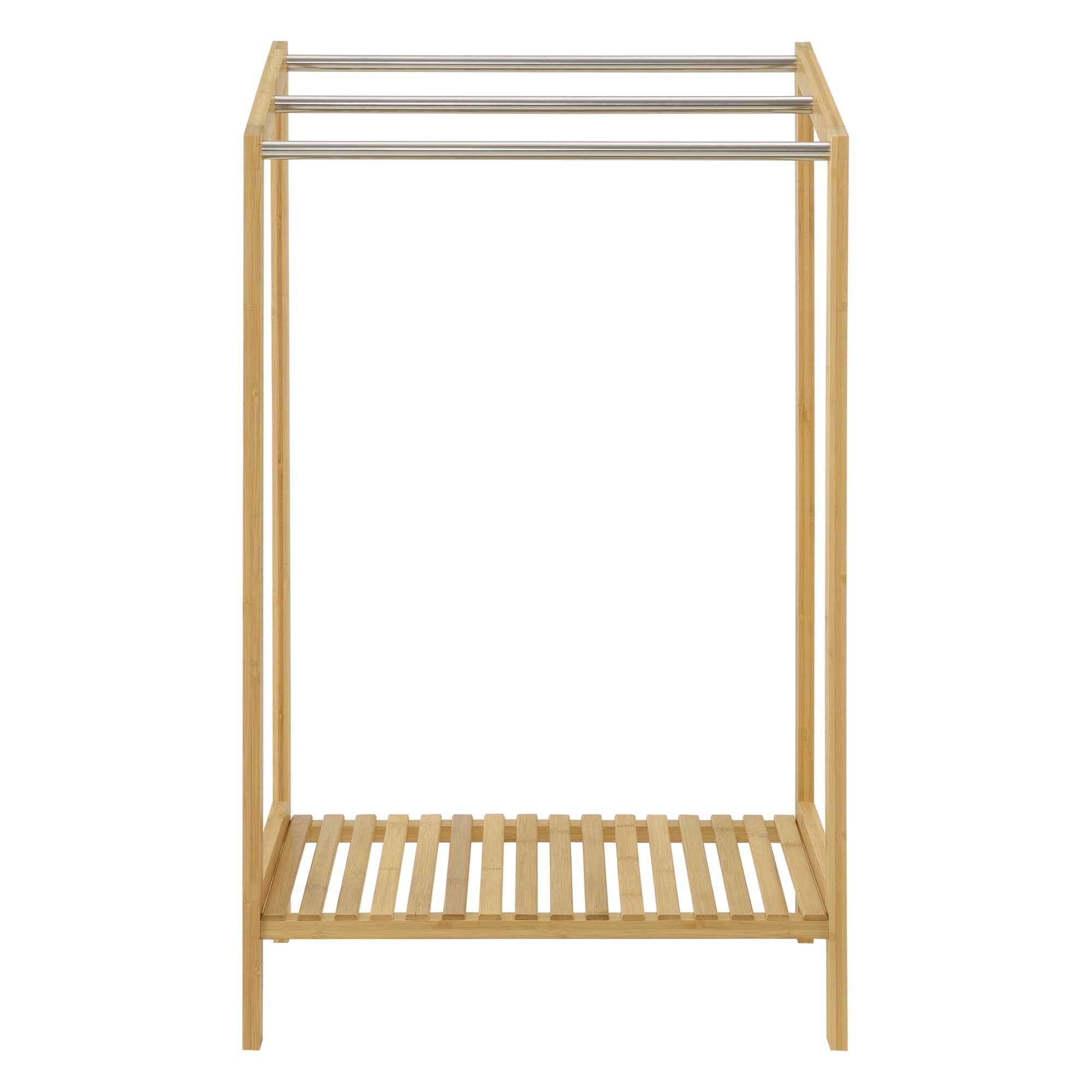 Le porte-serviettes sur pied offre la solution idéale pour suspendre facilement vos serviettes ou vos affaires de bain pour les faire sécher. Il dispose de 3 barres à serviettes placées à différentes hauteurs. De plus, la tablette inférieure permet de poser des tongs ou des serviettes fraîches.