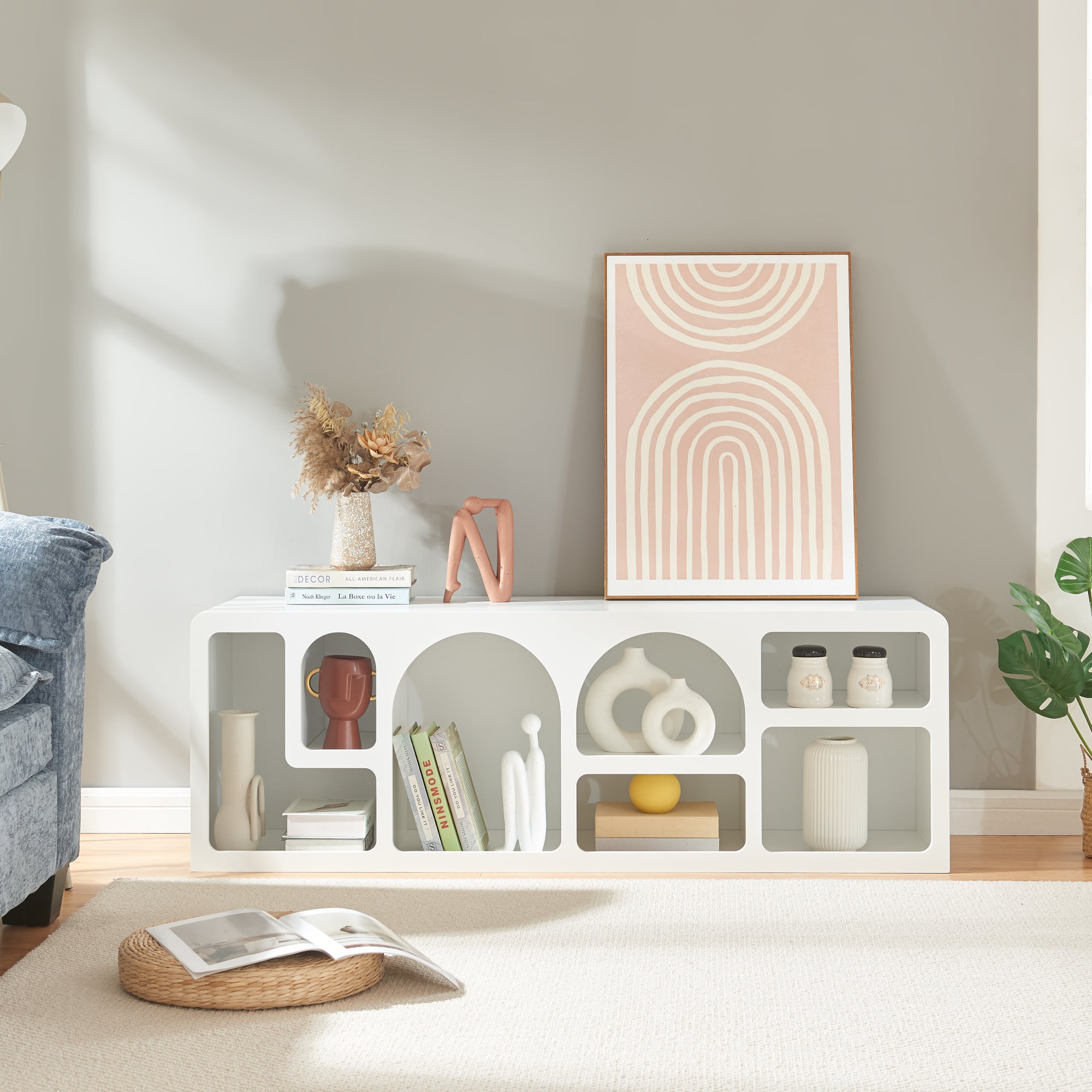 Le plateau spacieux de la table TV offre suffisamment de place pour votre téléviseur. En dessous se trouvent au total sept compartiments ouverts, idéaux pour ranger des livres, des DVD, des Blu-ray, des accessoires et des objets décoratifs. Cela contribue non seulement à un aspect soigné, mais garantit également que tous les appareils et accessoires importants sont toujours à portée de main.