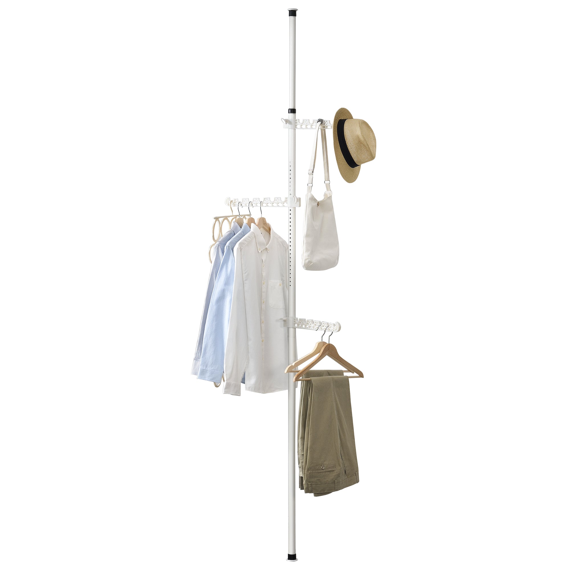 Le porte-manteau télescopique, peu encombrant et pratique, se fixe facilement entre le sol et le plafond et est idéal pour suspendre des vêtements.