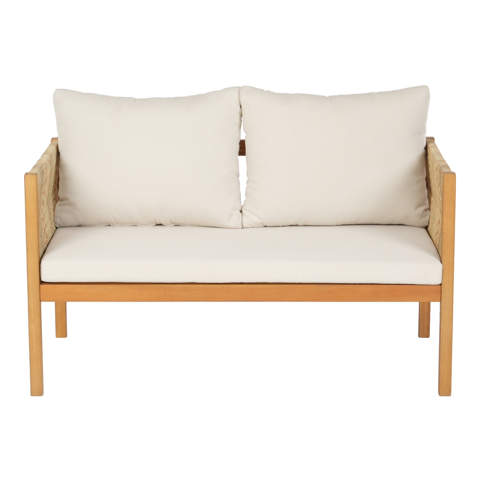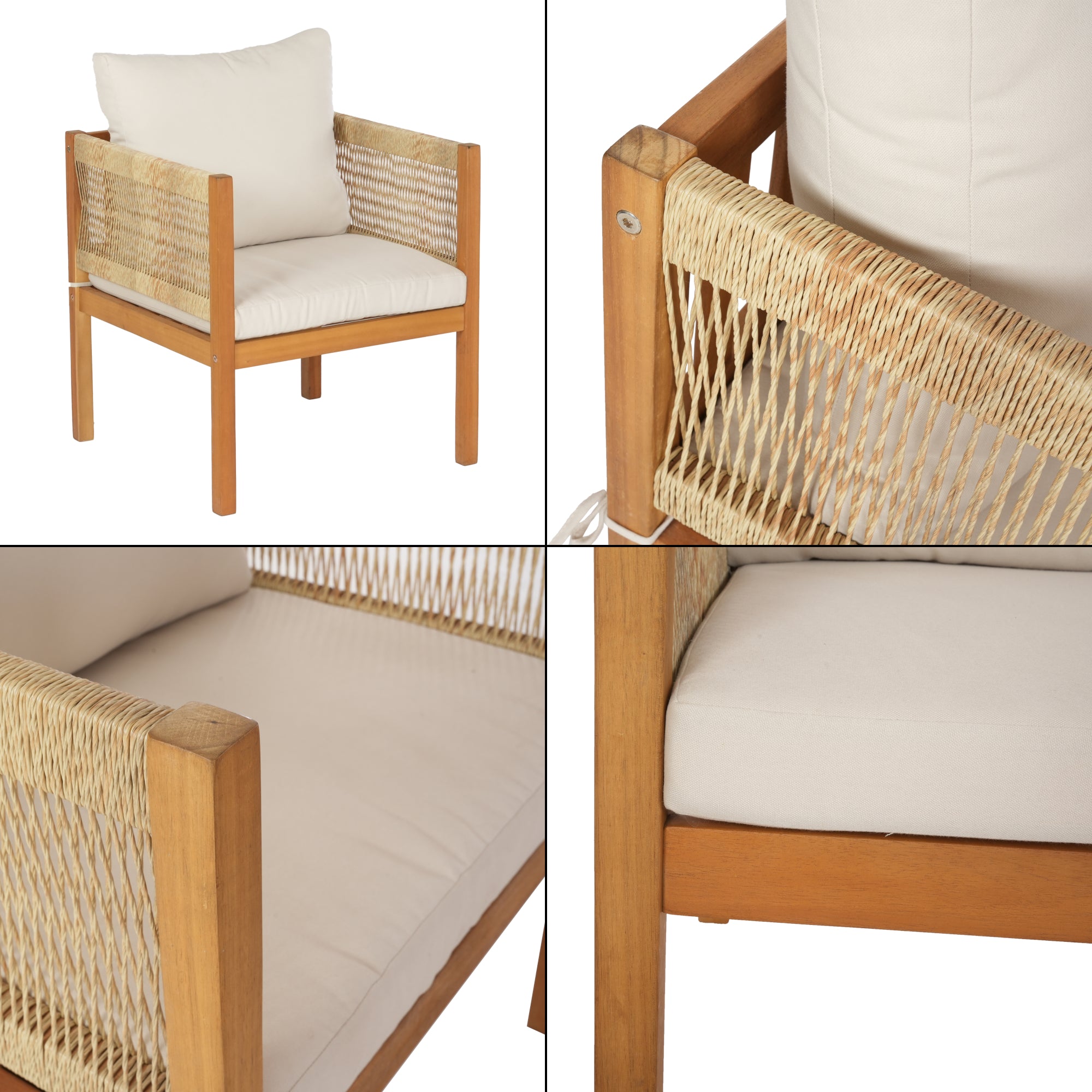 Les chaises et le banc 2 places de l'ensemble se distinguent par leurs accoudoirs décoratifs. De plus, ils sont équipés de coussins d'assise et de dossier rembourrés, garantissant un excellent confort d'assise.