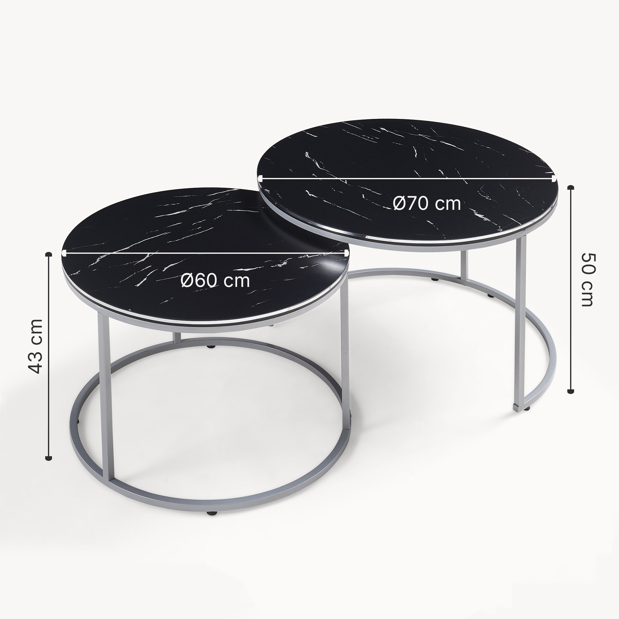 Les différentes hauteurs des deux tables créent non seulement un aspect attrayant, mais vous permettent également de les emboîter de manière peu encombrante si nécessaire. Vous pouvez ainsi optimiser et aménager votre espace de manière flexible.