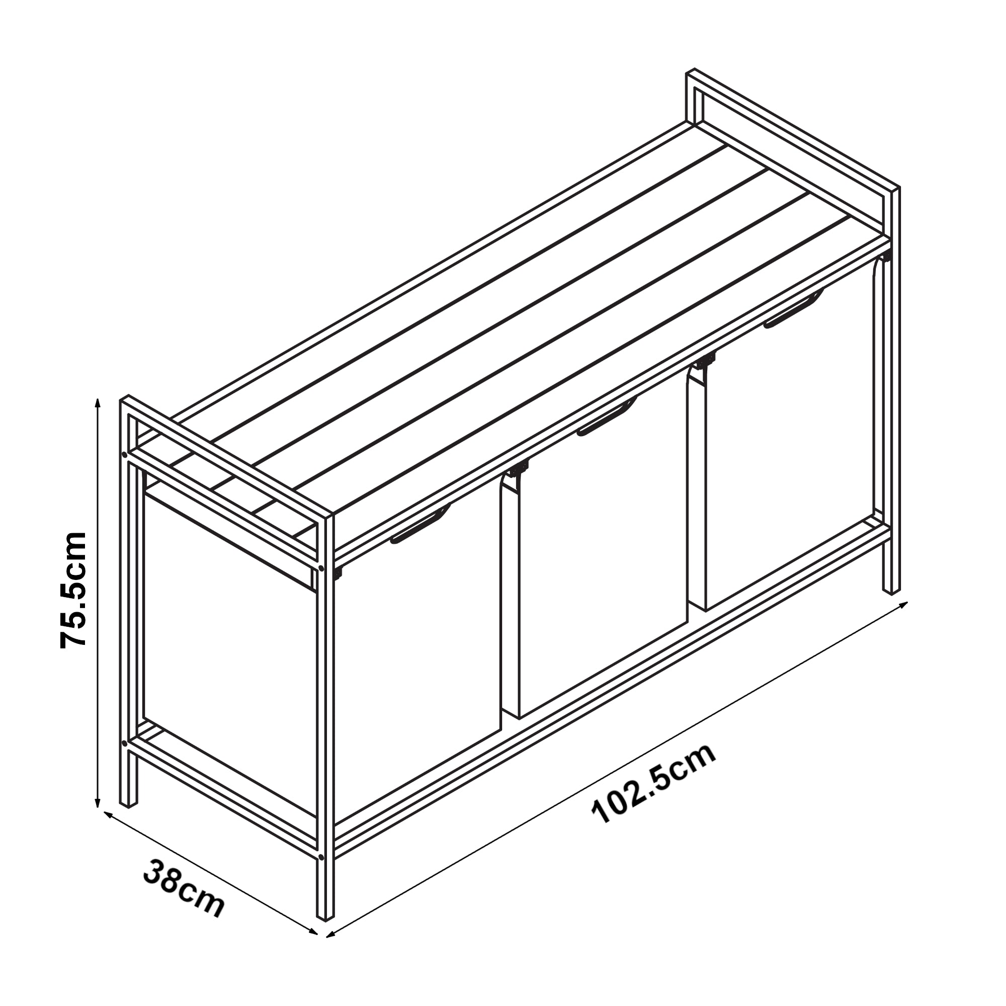 Grâce aux trois sacs à linge séparés, vous pouvez trier votre linge directement et efficacement. Cette répartition pratique vous aide à organiser vos vêtements sales, par exemple en séparant le linge blanc du linge coloré.