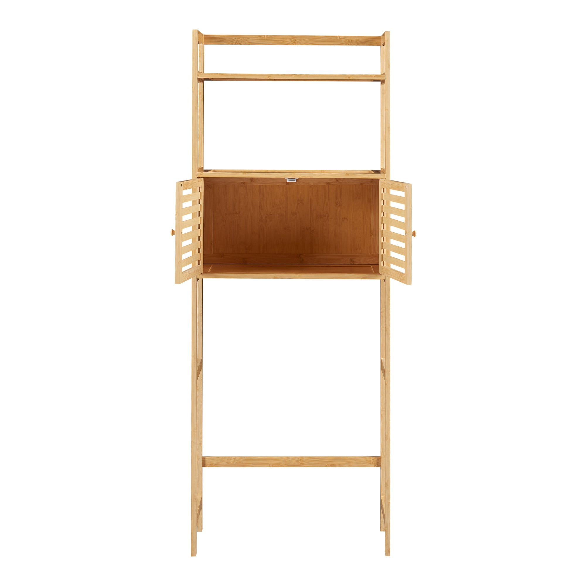 Cette étagère est équipée d’une armoire spacieuse dotée de deux portes. À l’intérieur, vous trouverez suffisamment d’espace de rangement pour garder tous vos parfums, produits cosmétiques et autres accessoires de salle de bain bien organisés et à portée de main.