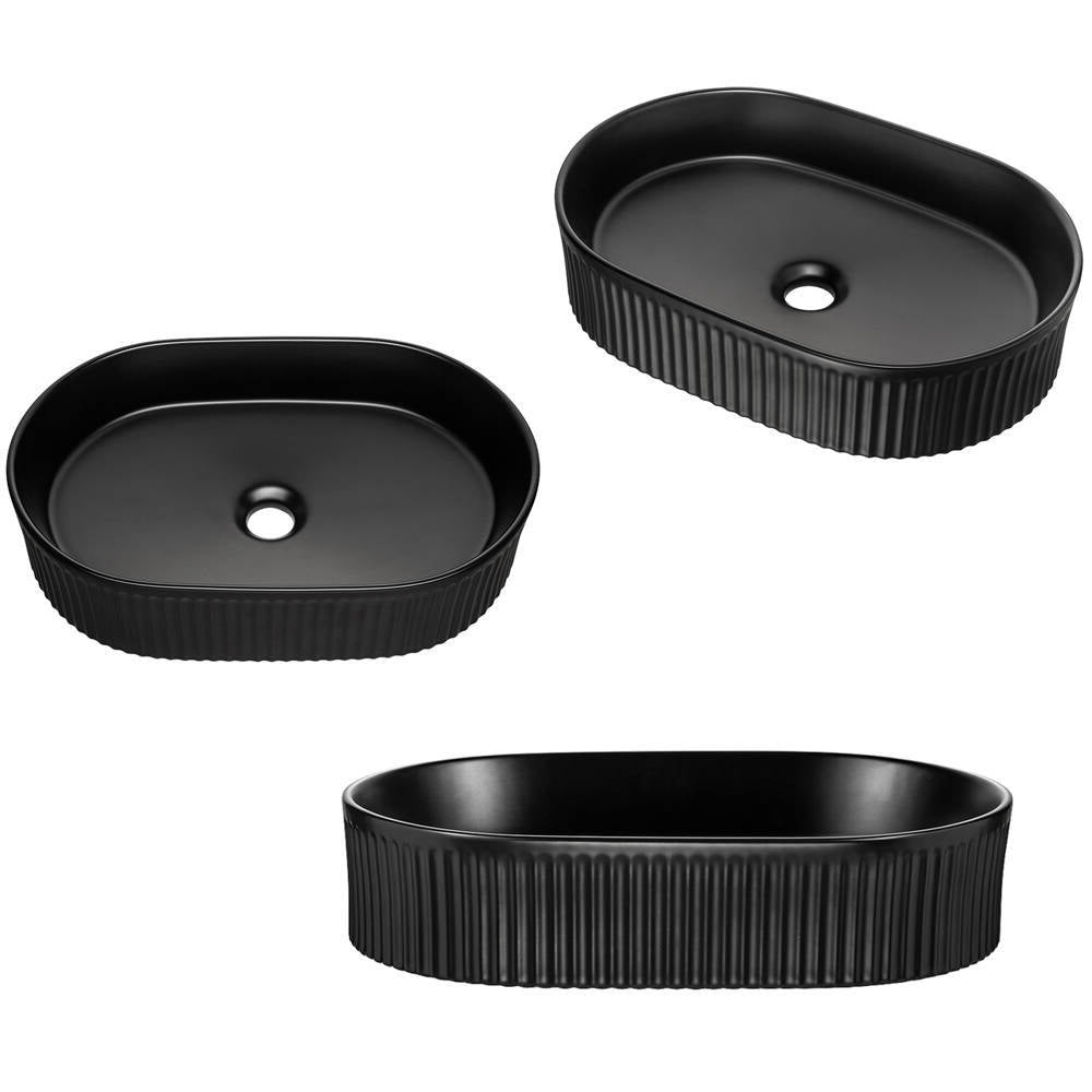 - Matériau façade : MDF (panneau de fibres à densité moyenne), thermoformé, noir rainuré