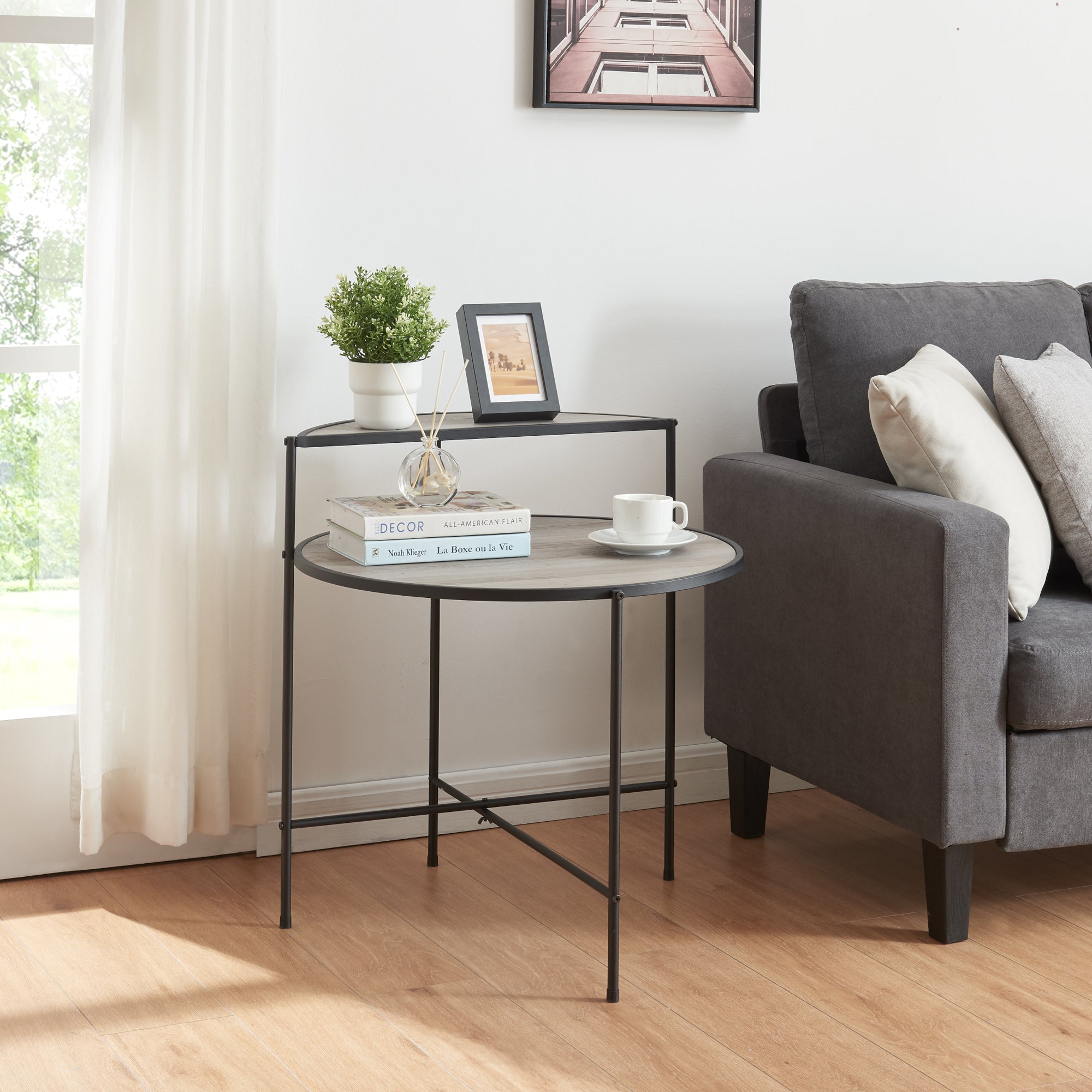 Le plateau de table et l'étagère supérieure demi-circulaire offrent suffisamment d'espace pour votre télécommande, vos livres, magazines et autres objets personnels. Vous pouvez y poser en toute sécurité des snacks et des boissons pendant que vous regardez votre série préférée, ou garder votre lecture actuelle à portée de main. De plus, vous pouvez utiliser la table de manière créative pour mettre en valeur des objets décoratifs tels que des vases, des bougies ou des cadres photo.