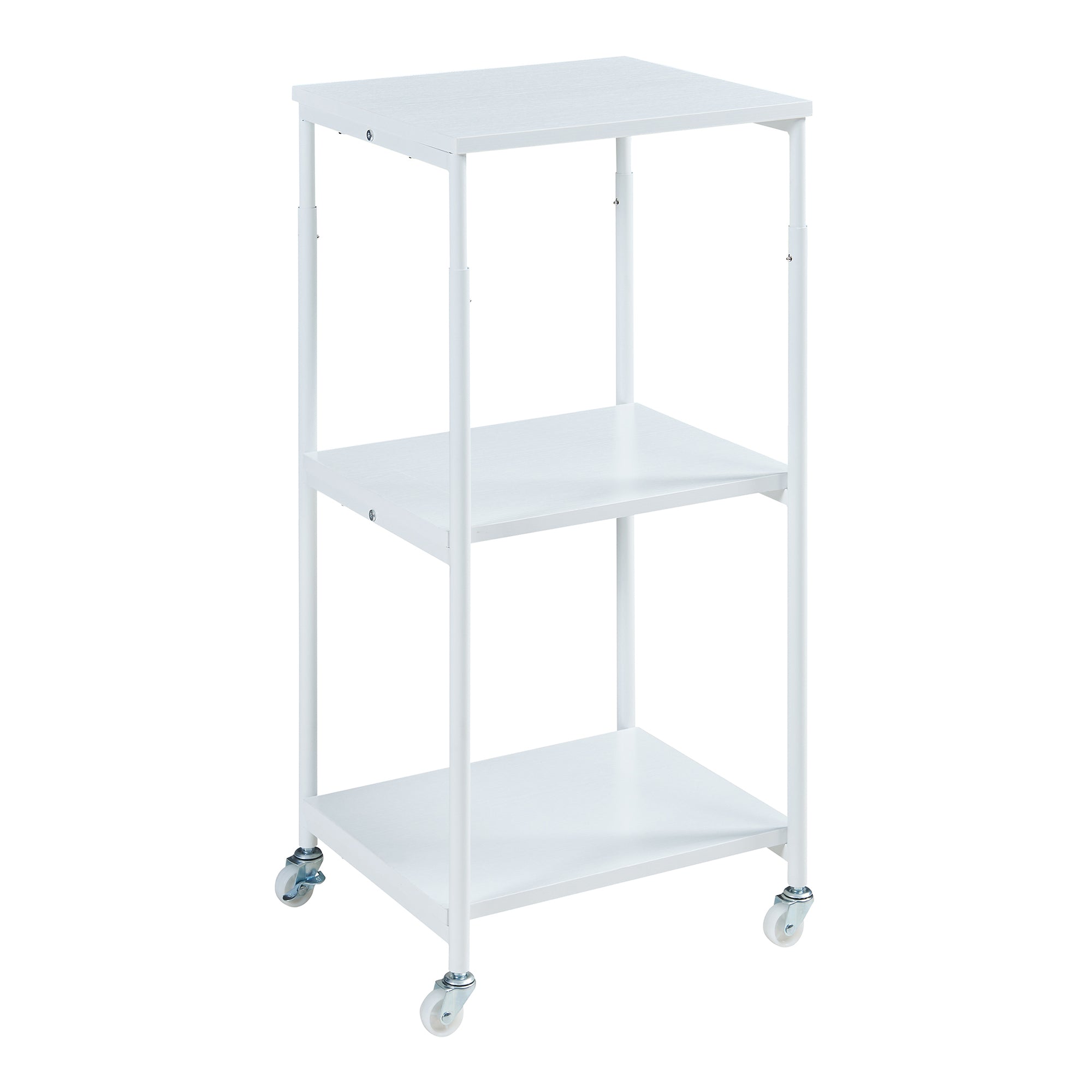 Le support d'imprimante à trois niveaux est polyvalent et peut bien sûr être utilisé à d'autres fins. En cuisine, il sert de chariot de service, dans la salle de bain comme étagère pour les produits de soin, et dans le salon comme table d'appoint mobile.