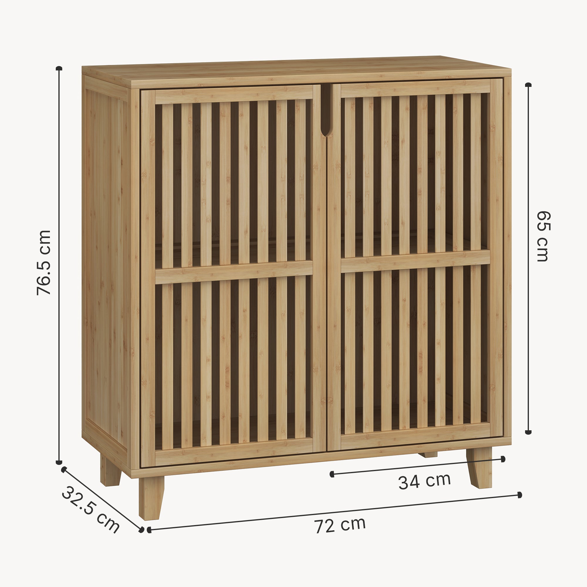 2 grands compartiments derrière des portes ventilées offrent un rangement clair pour les objets du quotidien.