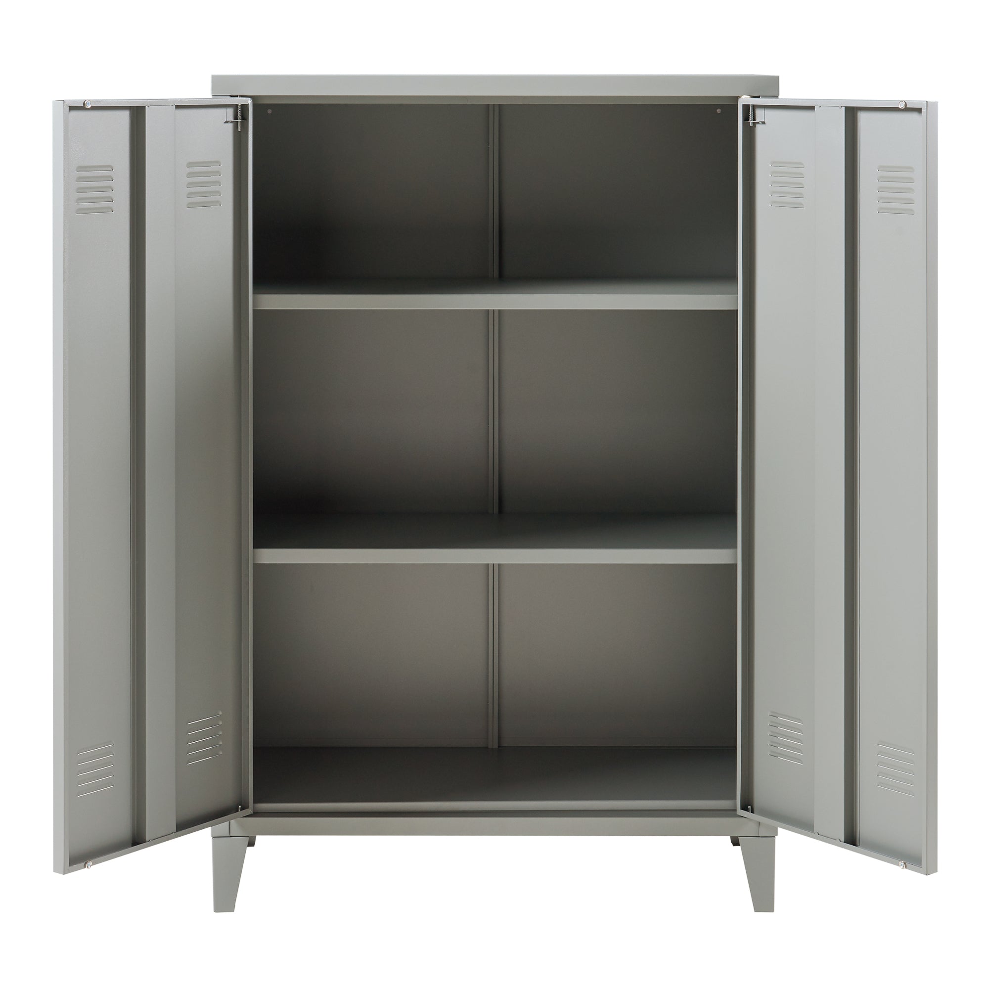 Cette armoire spacieuse à deux portes offre un espace de rangement optimal pour les classeurs et le matériel de bureau. Les fentes de ventilation sur les portes assurent une circulation d'air efficace, idéale pour le stockage de documents sensibles.