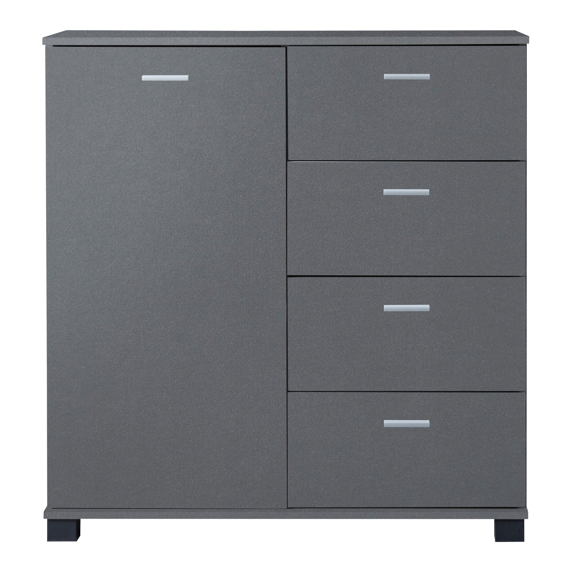 Notre buffet avec une porte d’armoire et quatre tiroirs est la solution idéale pour ranger vos objets ménagers de manière ordonnée et élégante. Grâce à son design réfléchi et à ses multiples possibilités d’utilisation, il convient parfaitement à différents espaces de votre maison. Il séduit non seulement par son apparence esthétique, mais aussi par les possibilités de rangement pratiques à l’intérieur.