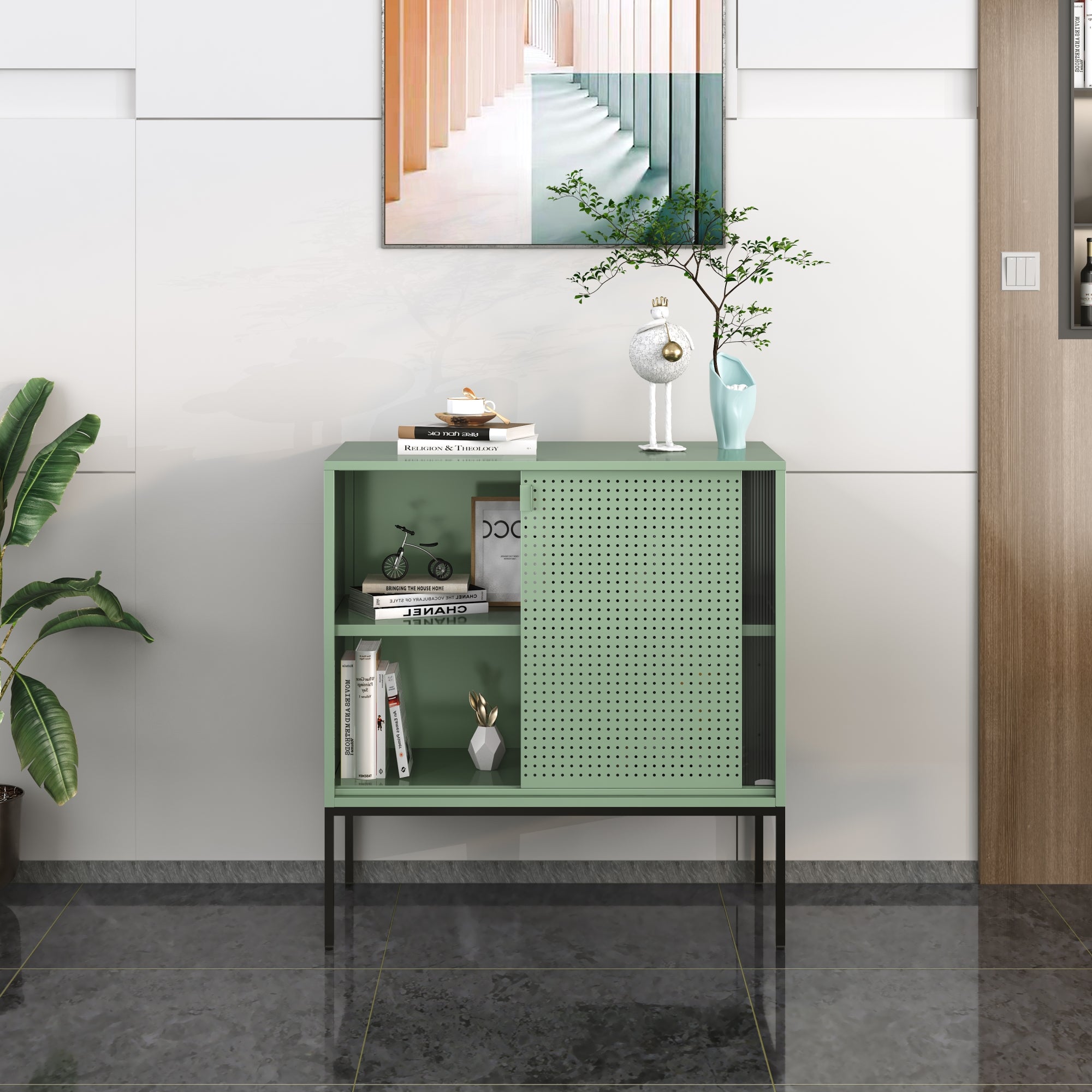 Le meuble de salon est un meuble élégant et pratique qui constitue le complément parfait pour votre espace de vie. Il dispose d'une porte en métal décorative et d'une surface de rangement supplémentaire à l'intérieur du meuble.