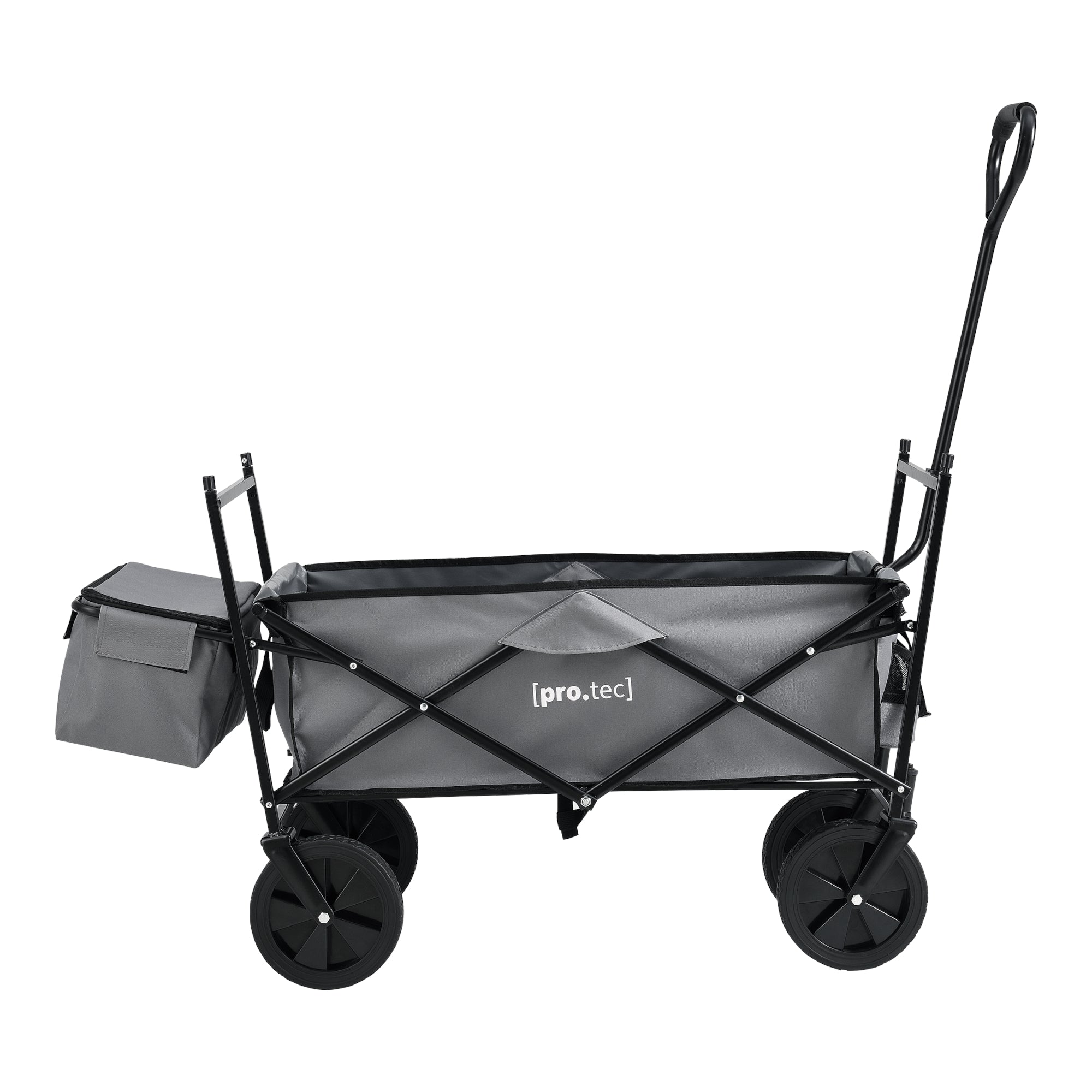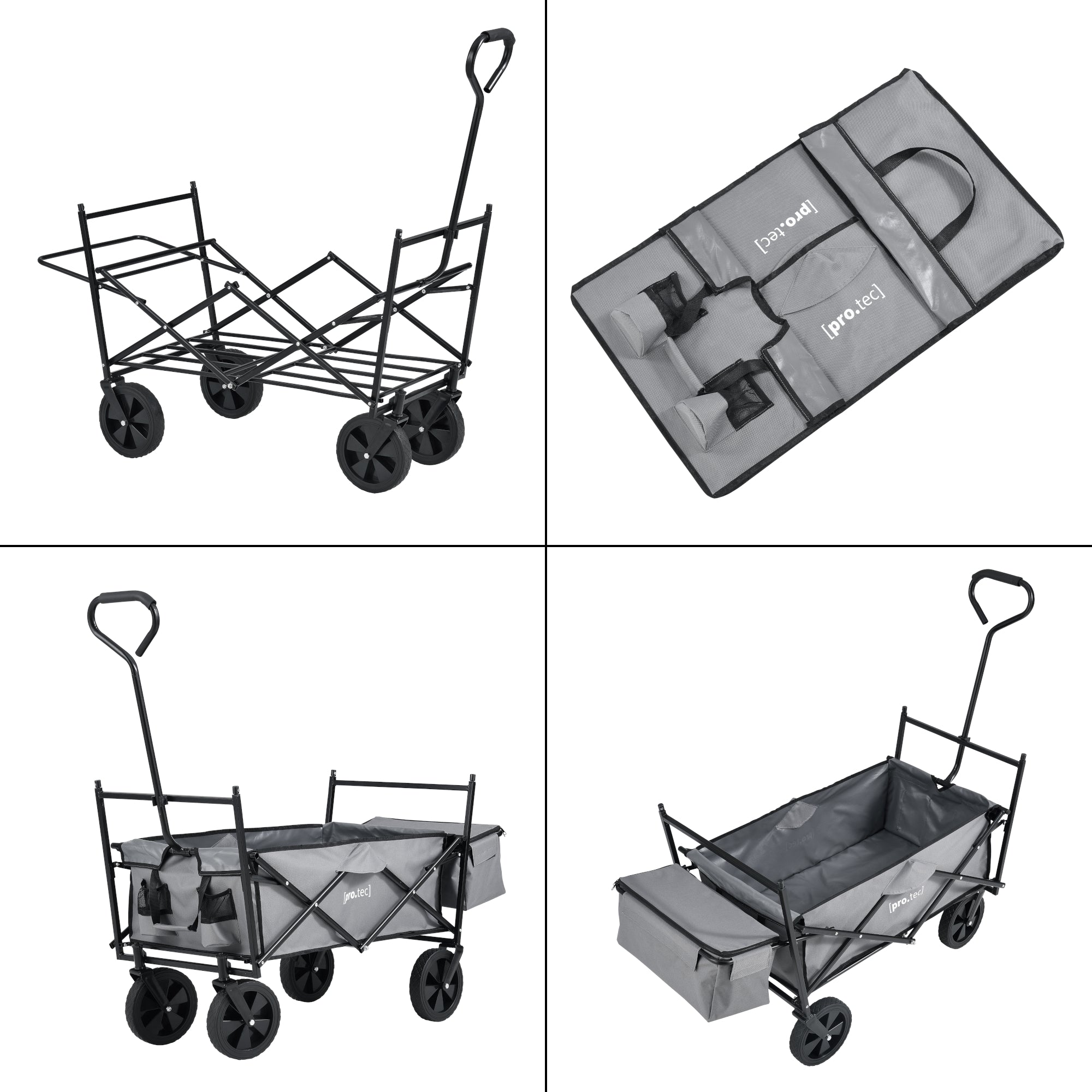 Le chariot de transport pliable est polyvalent et le compagnon idéal pour les loisirs. Il offre beaucoup d’espace grâce à sa grande surface de chargement et une possibilité supplémentaire de rangement avec la poche à l’arrière. Ainsi, le chariot à main est parfait pour les festivals, les excursions et autres activités de loisirs. De plus, le toit amovible protège contre les averses et l’exposition au soleil.