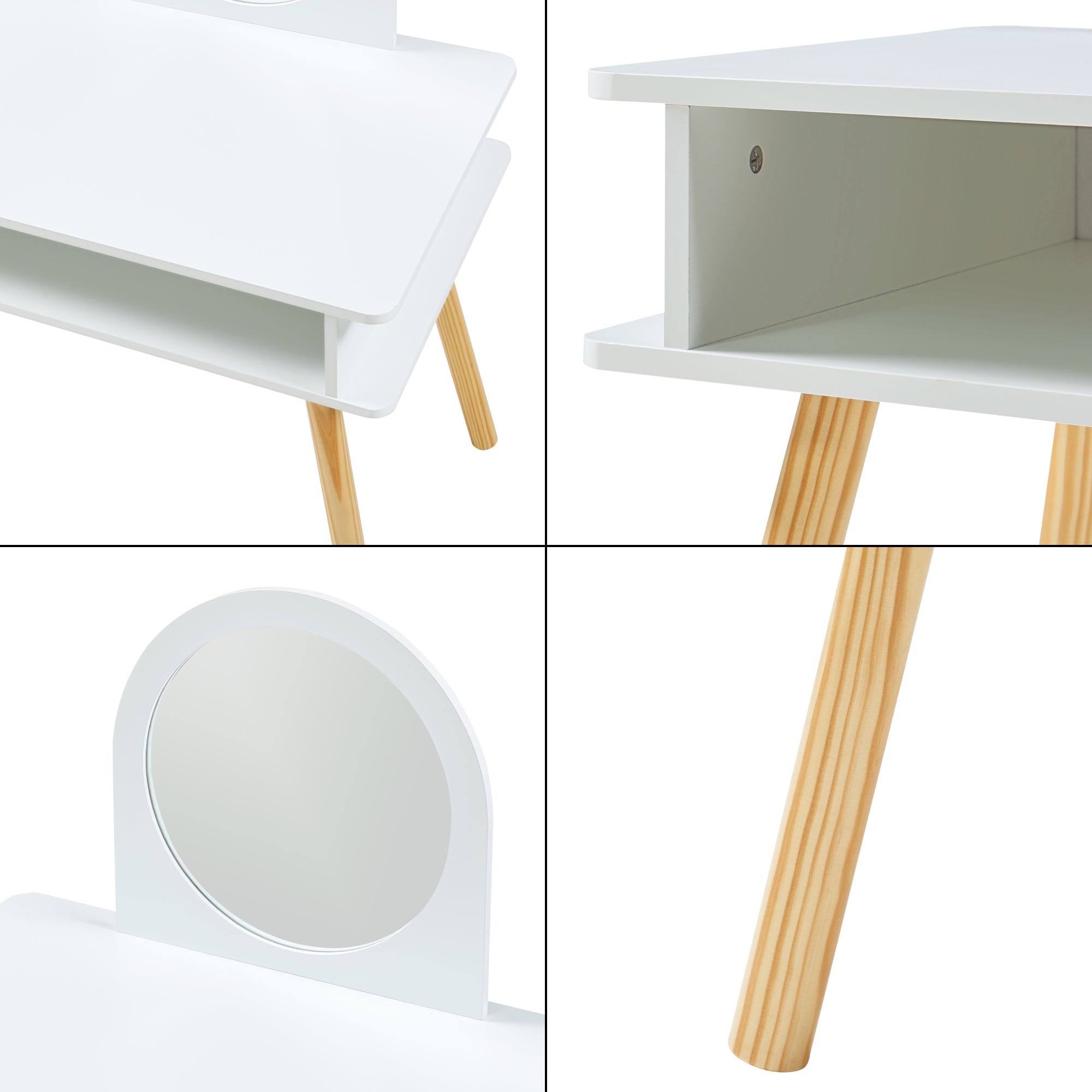 La coiffeuse dispose d’un plateau spacieux pour les brosses, les jouets, les petits accessoires ou le matériel de bricolage. Elle est équipée d’un miroir qui invite à observer et à réaliser des idées de coiffure ludiques. Le compartiment de rangement inférieur crée un espace supplémentaire pour les livres ou d’autres objets préférés.