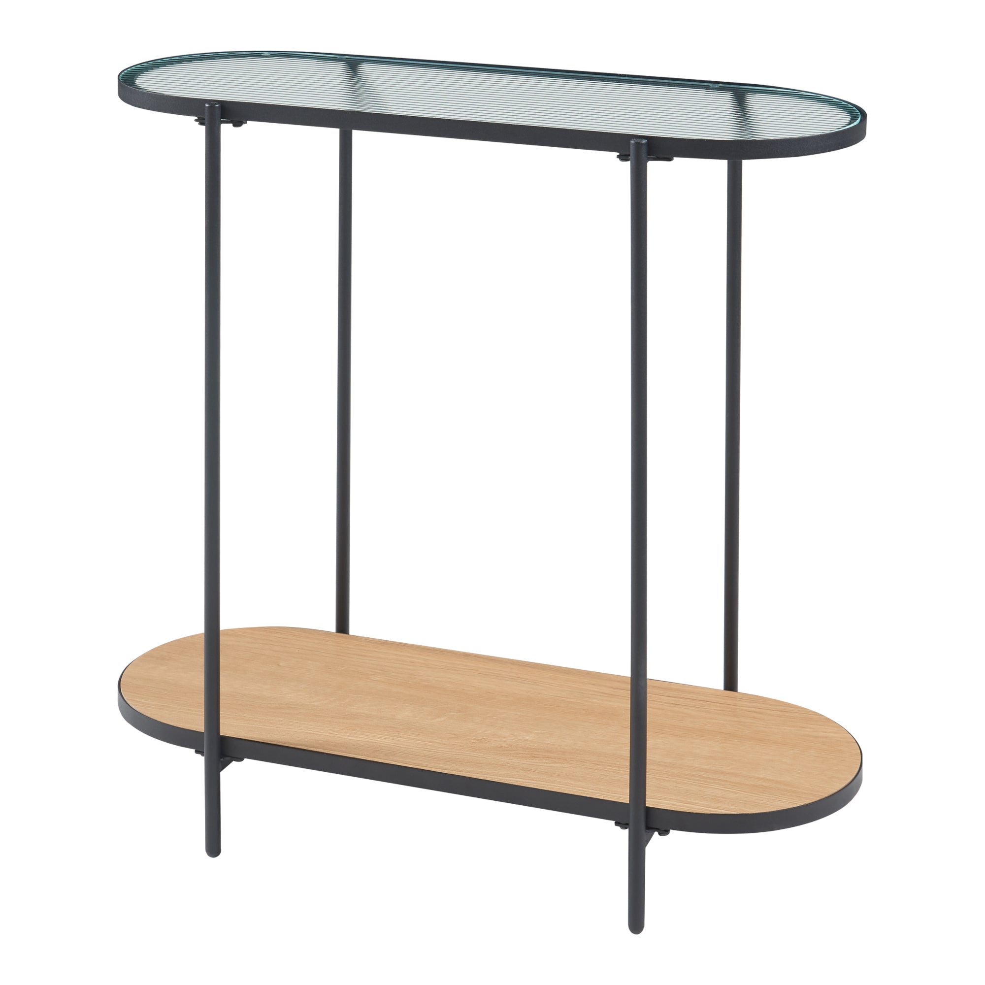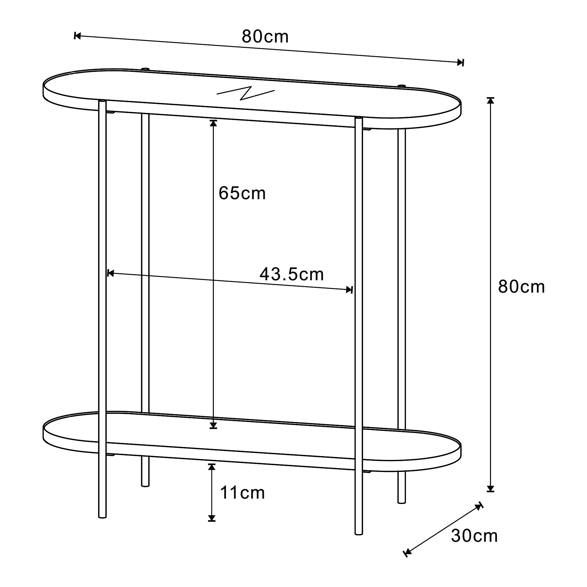 Notre table console allie praticité et esthétique. Son plateau en forme ovale constitue un espace de rangement idéal et élégant pour vos clés ou lettres à l'entrée de votre maison, tandis que l'étagère inférieure peut également mettre en valeur vos objets de décoration dans votre couloir ou salon. Son design intemporel et sa structure stable en métal en font un ajout parfait pour différentes pièces de votre intérieur.