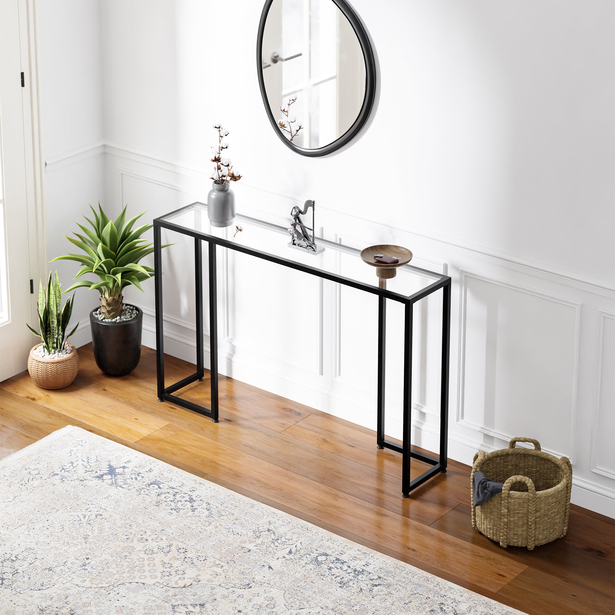 Elle est polyvalente et idéale comme table d'entrée. Vous pouvez y déposer vos clés, votre courrier et d'autres objets importants de manière ordonnée et les avoir toujours à portée de main.