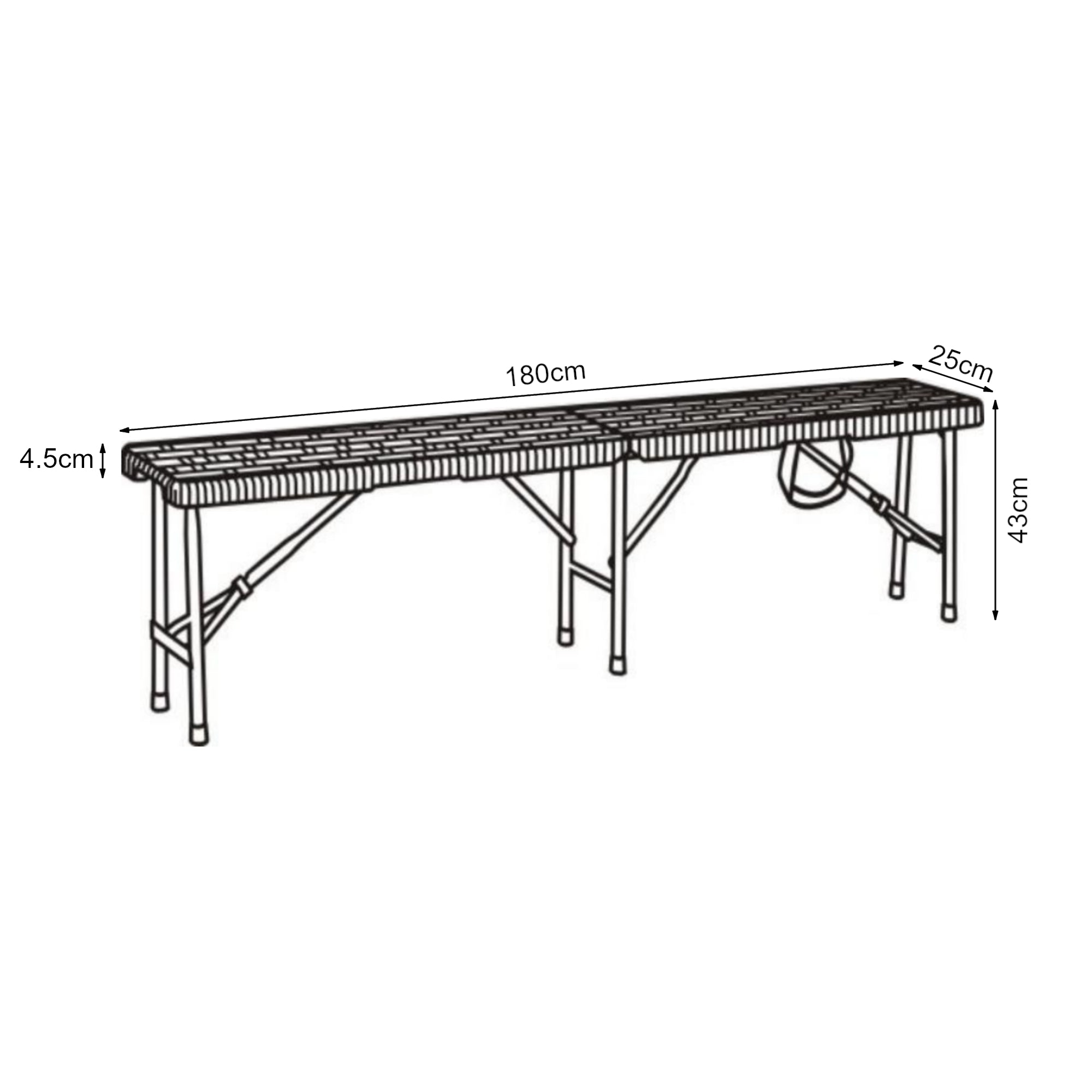 - Total (LxlxH) : 180 x 25 x 43 cm