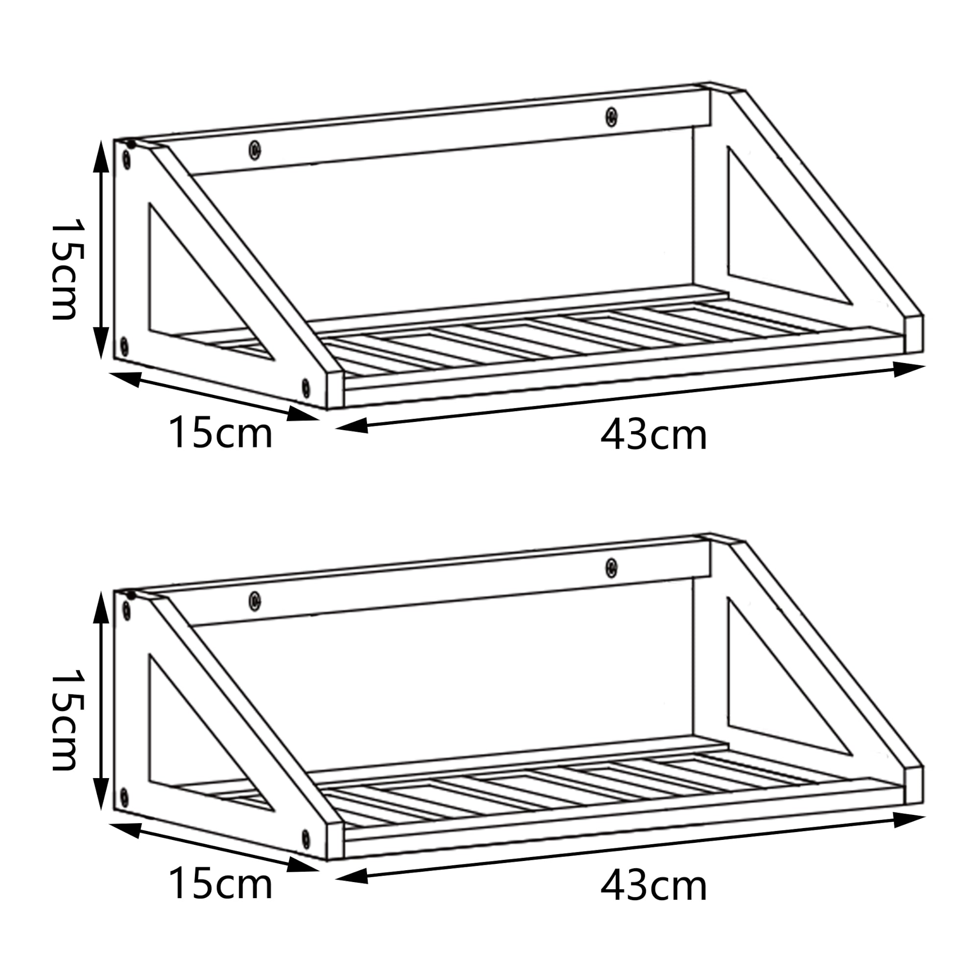 Il se compose de deux étagères murales offrant suffisamment d'espace pour ranger vos objets de manière ordonnée. Que ce soit dans la cuisine, le salon ou la salle de bain, cet ensemble d'étagères offre de nombreuses possibilités d'utilisation.