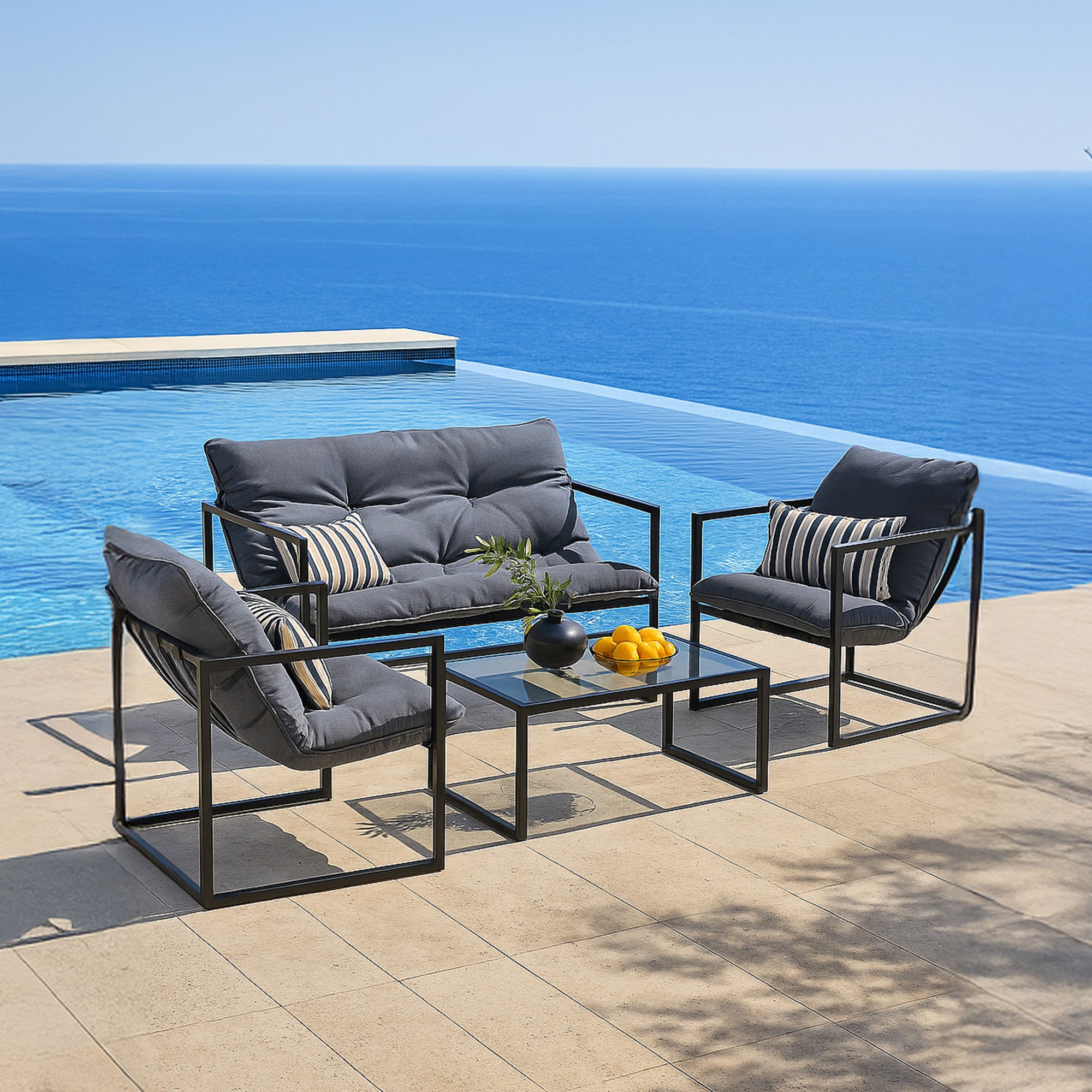 - Chaises et banc de jardin avec coussins d'assise et de dossier confortables