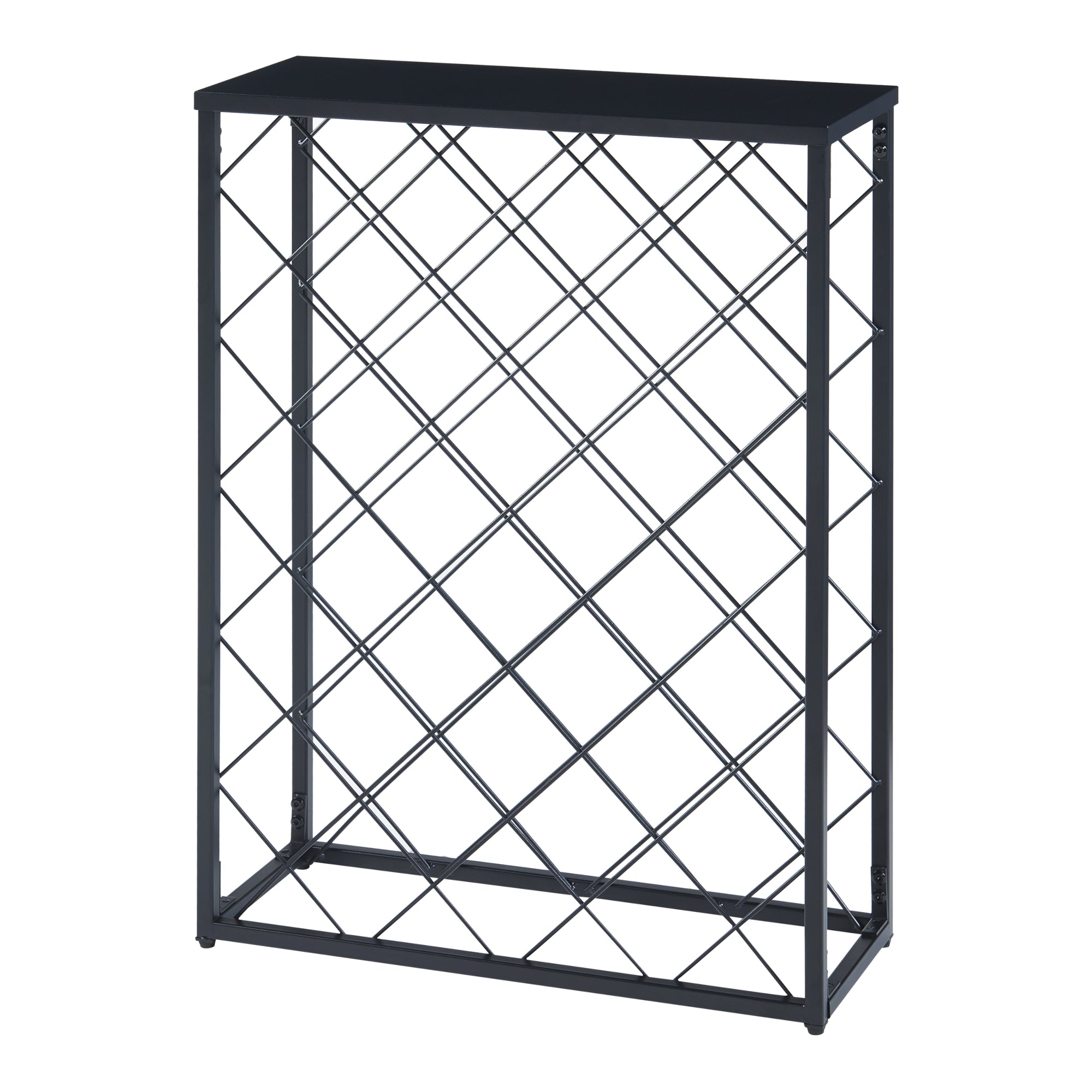 Cet élégant casier à vin allie style et praticité, offrant une présentation attrayante pour votre collection. Grâce à son design grillagé, l'étagère permet de ranger correctement jusqu'à 25 bouteilles. Les supports horizontaux préservent la qualité des bouteilles en les maintenant correctement stockées. De plus, son plateau offre une surface de rangement pour le accessoires ou décorations.