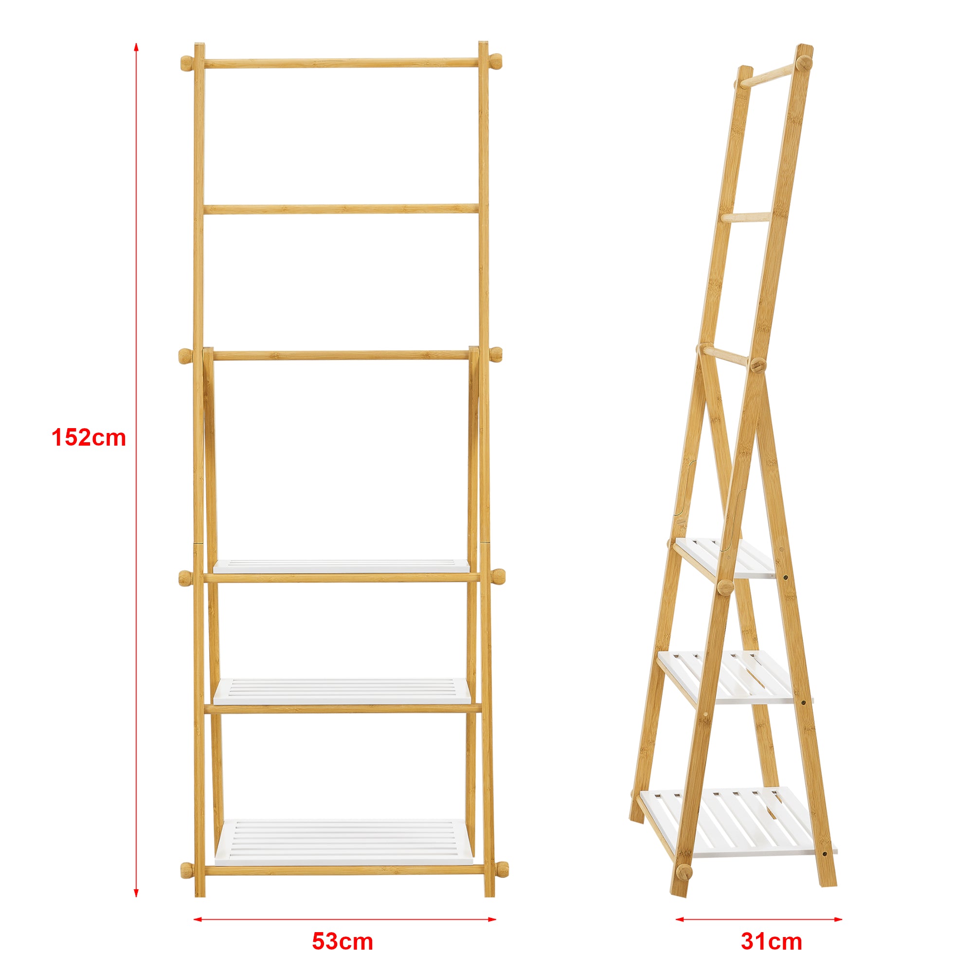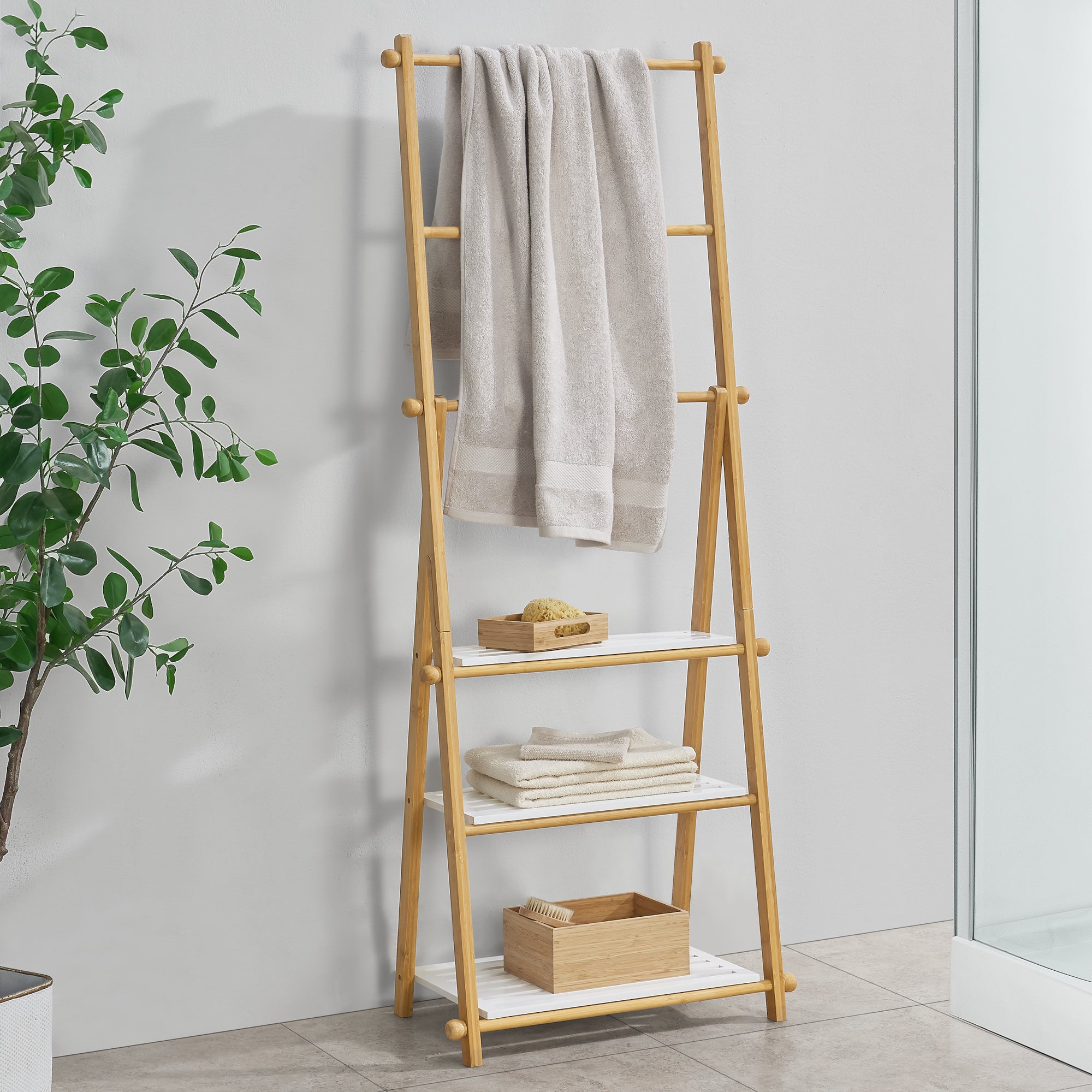 Cette étagère autoportante est un accessoire pratique pour avoir une salle de bain bien organisée. Comme elle pliable, il est facile à la ranger. Le meuble offre 3 surfaces pour vos produits de toilette et accessoires, quant au porte-serviette intégré, il permet d'avoir une serviette propre toujours à portée de main.