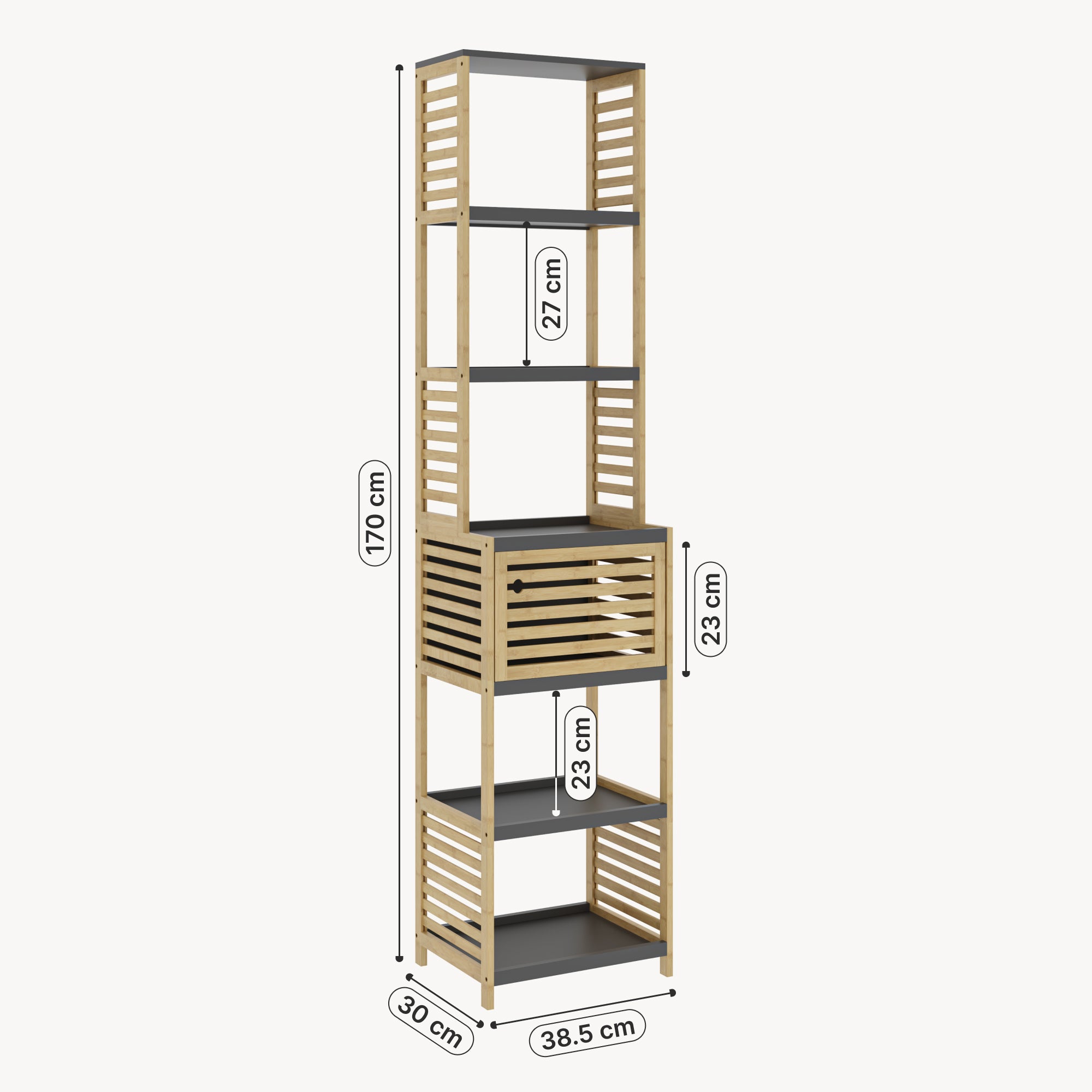 Elle convient à la salle de bains, aux toilettes d’invités ou à la buanderie et permet de stocker accessoires, paniers et provisions de manière ordonnée pour un rendu harmonieux.