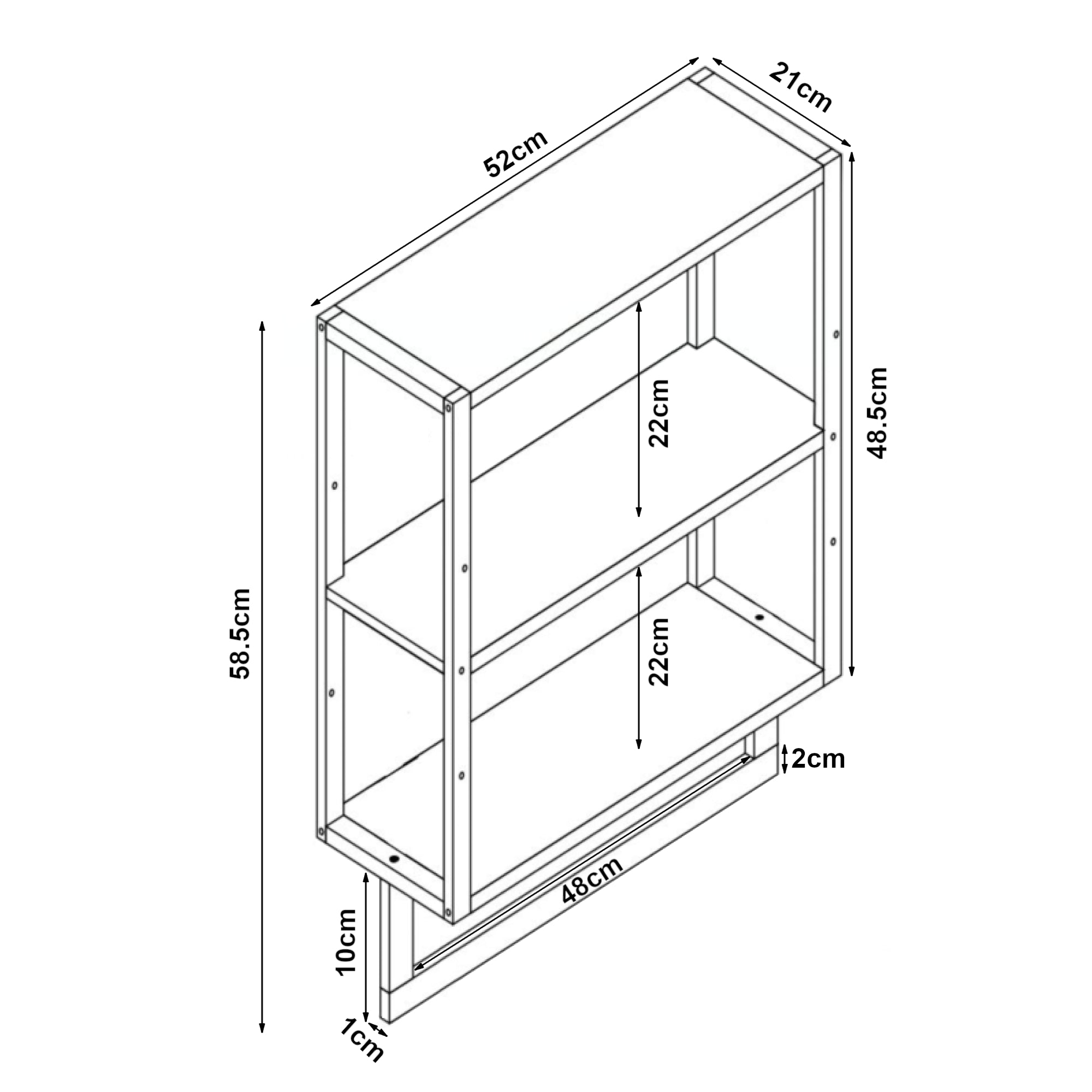 - totales (hauteur x largeur x profondeur) : 58,5 x 52 x 21 cm