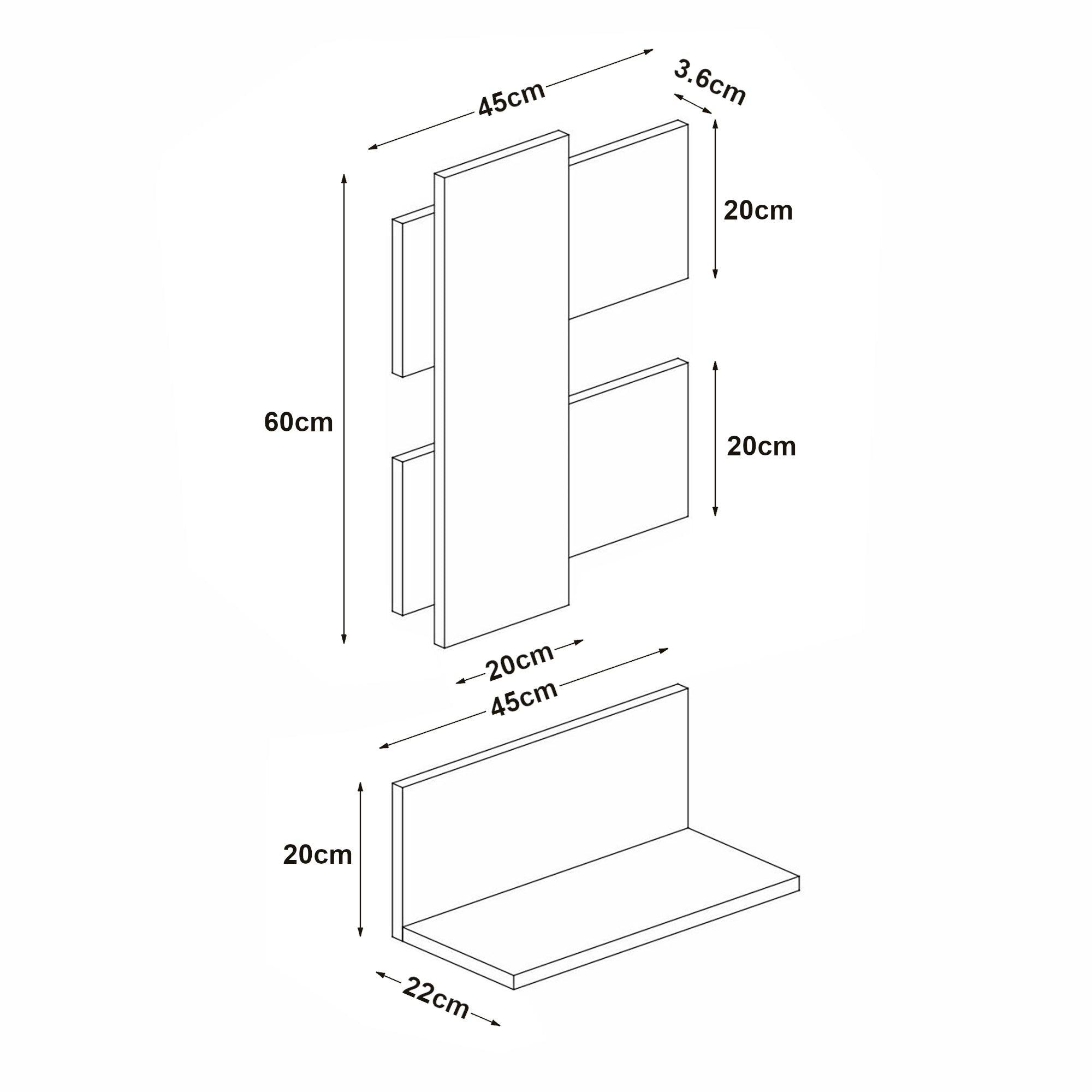 - Étagère (HxLxP) : 20 x 45 x 22 cm