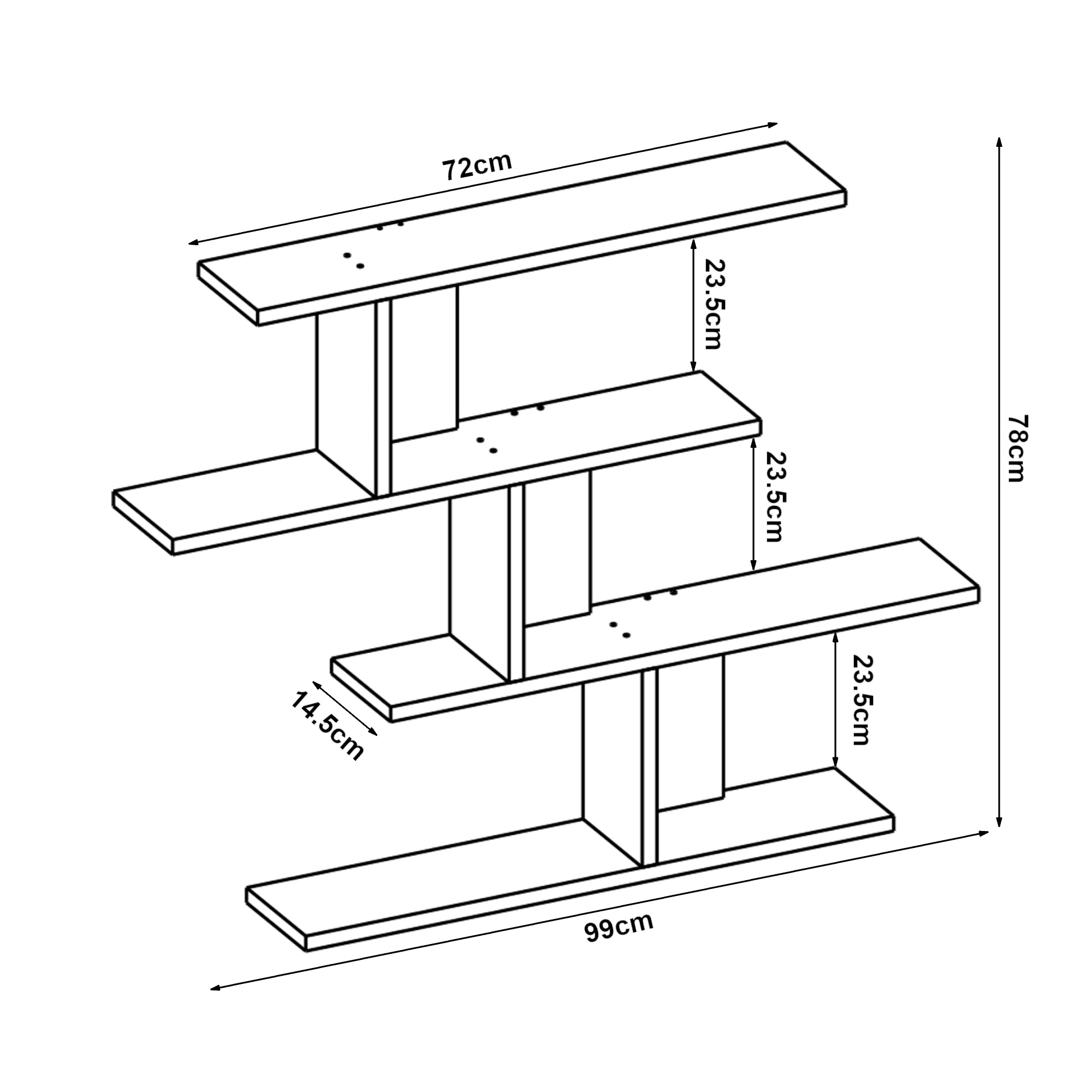 - Quatre niveaux décalés pour décorations, livres et plus encore