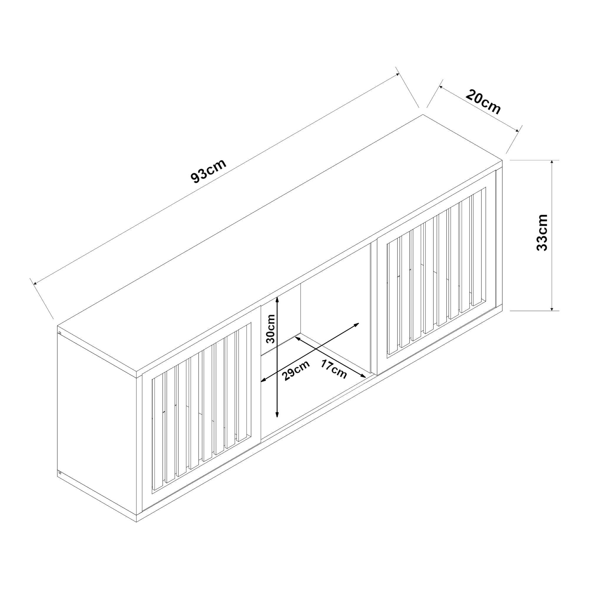 - Total (LxPxH) : 93 x 20 x 33 cm