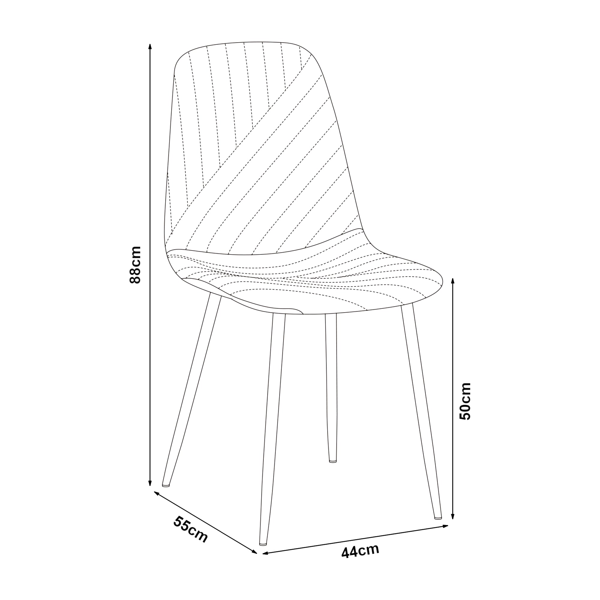 - Chaise (H x L x P) : env. 88 x 44 x 55 cm