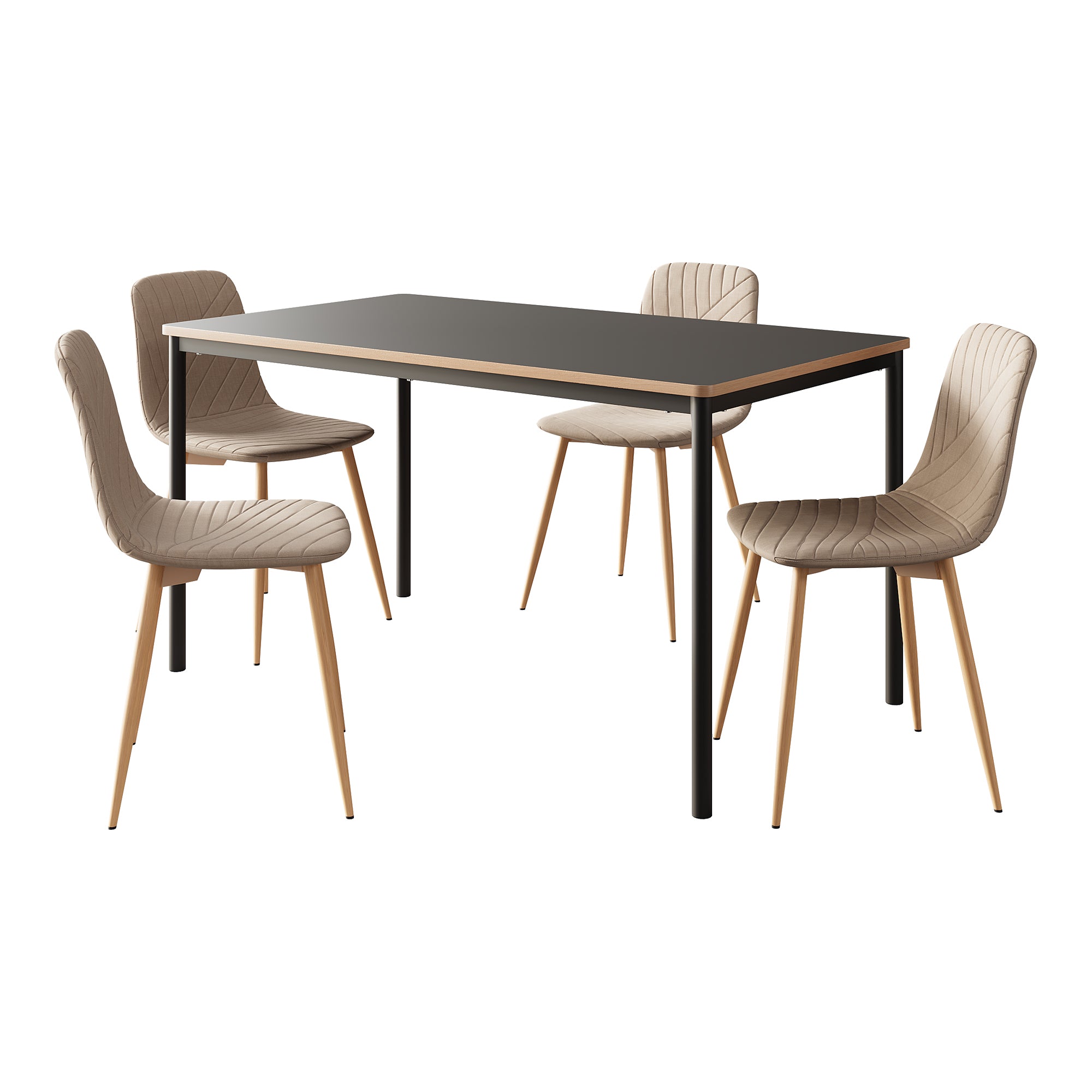 Les quatre chaises confortables avec dossier créent un espace d'assise chaleureux et confortable. Elles s'accordent parfaitement avec la table et disposent chacune de quatre pieds robustes ainsi que d'une assise rembourrée.