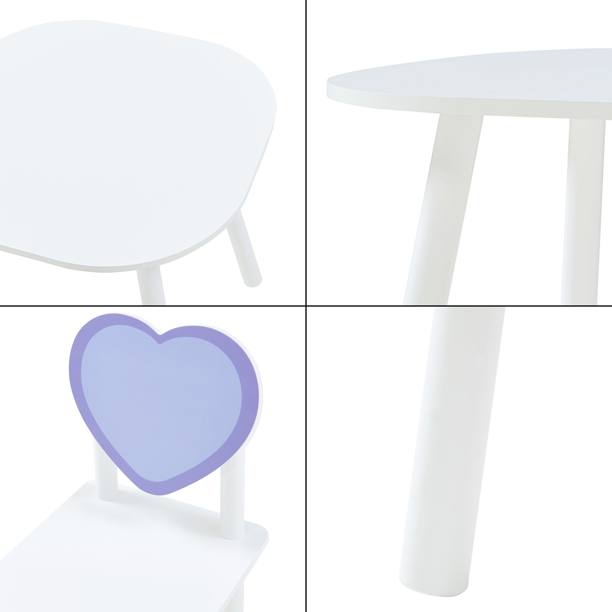 Les deux chaises sont conçues à une hauteur adaptée aux enfants et assurent un confort d'assise optimal, spécialement adapté aux besoins des plus petits. Leurs dossiers en forme de cœur charmante apportent une touche décorative et en font un élément particulièrement attrayant.