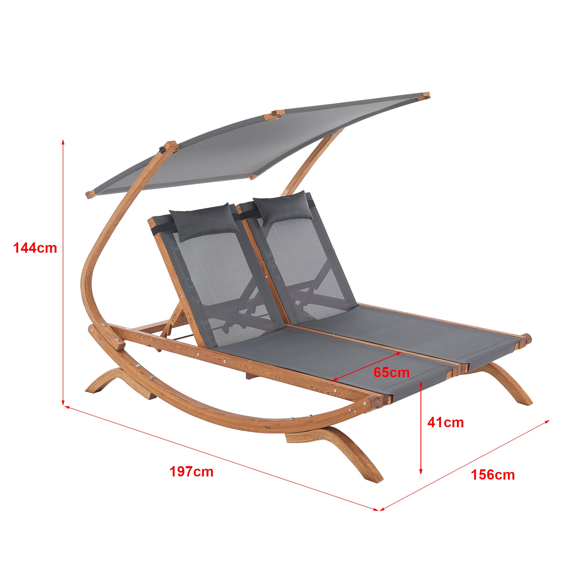 Le lit double est idéal pour votre jardin ou votre terrasse. Il se compose de 2 surfaces de couchage séparées. Les dossiers sont réglables indépendamment les uns des autres et les coussins confortables pour la tête offrent une détente supplémentaire.