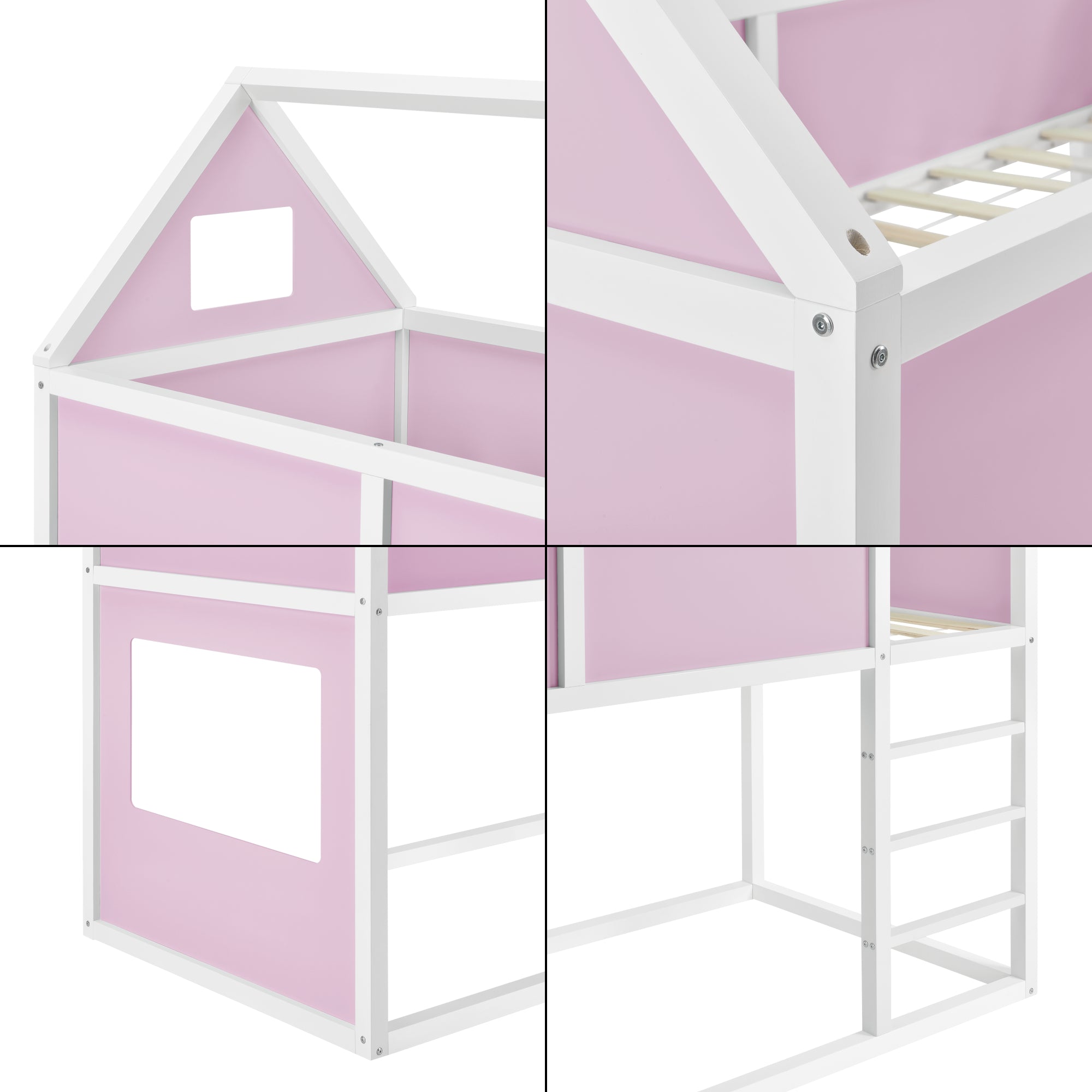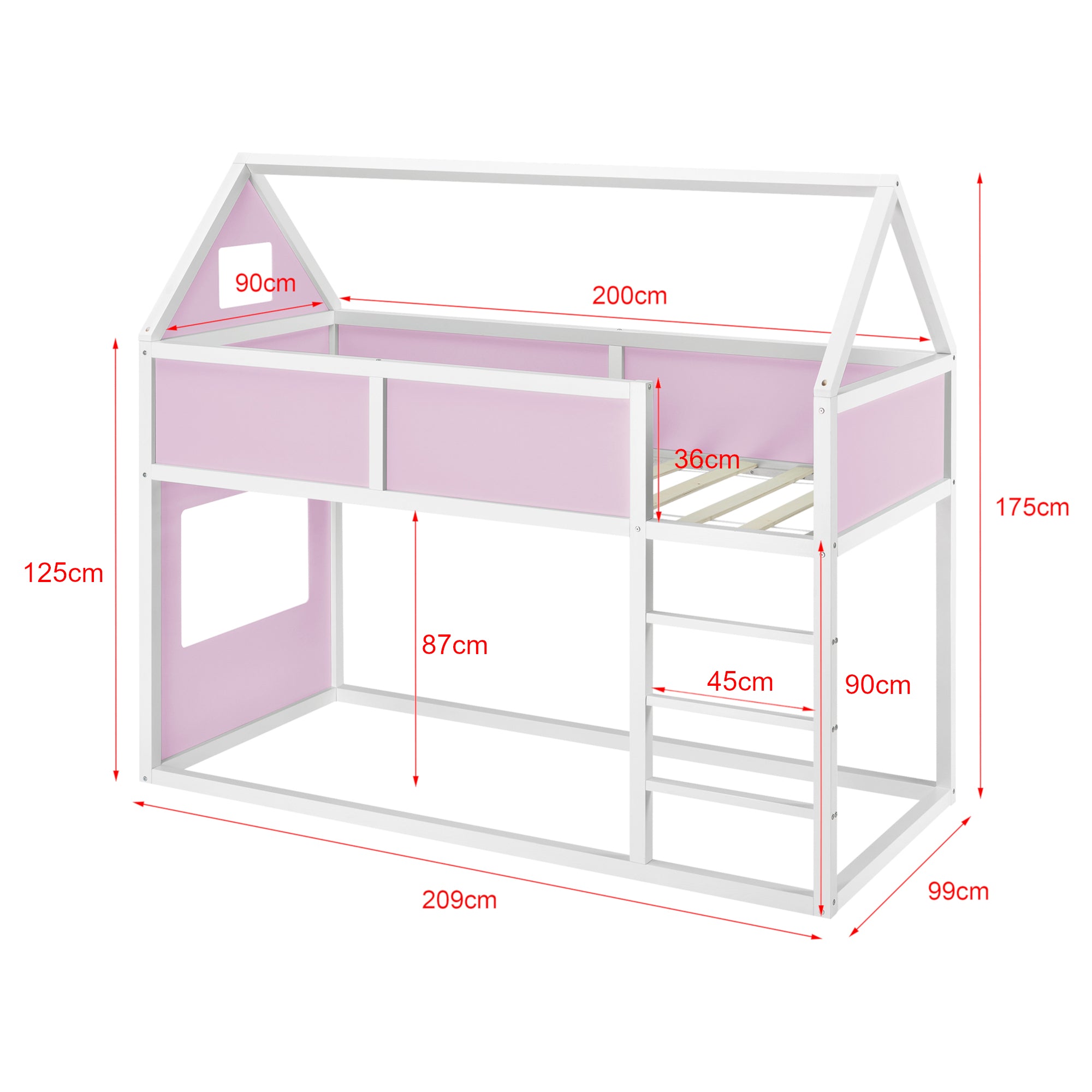- Lit mezzanine enfant en forme de maison avec échelle