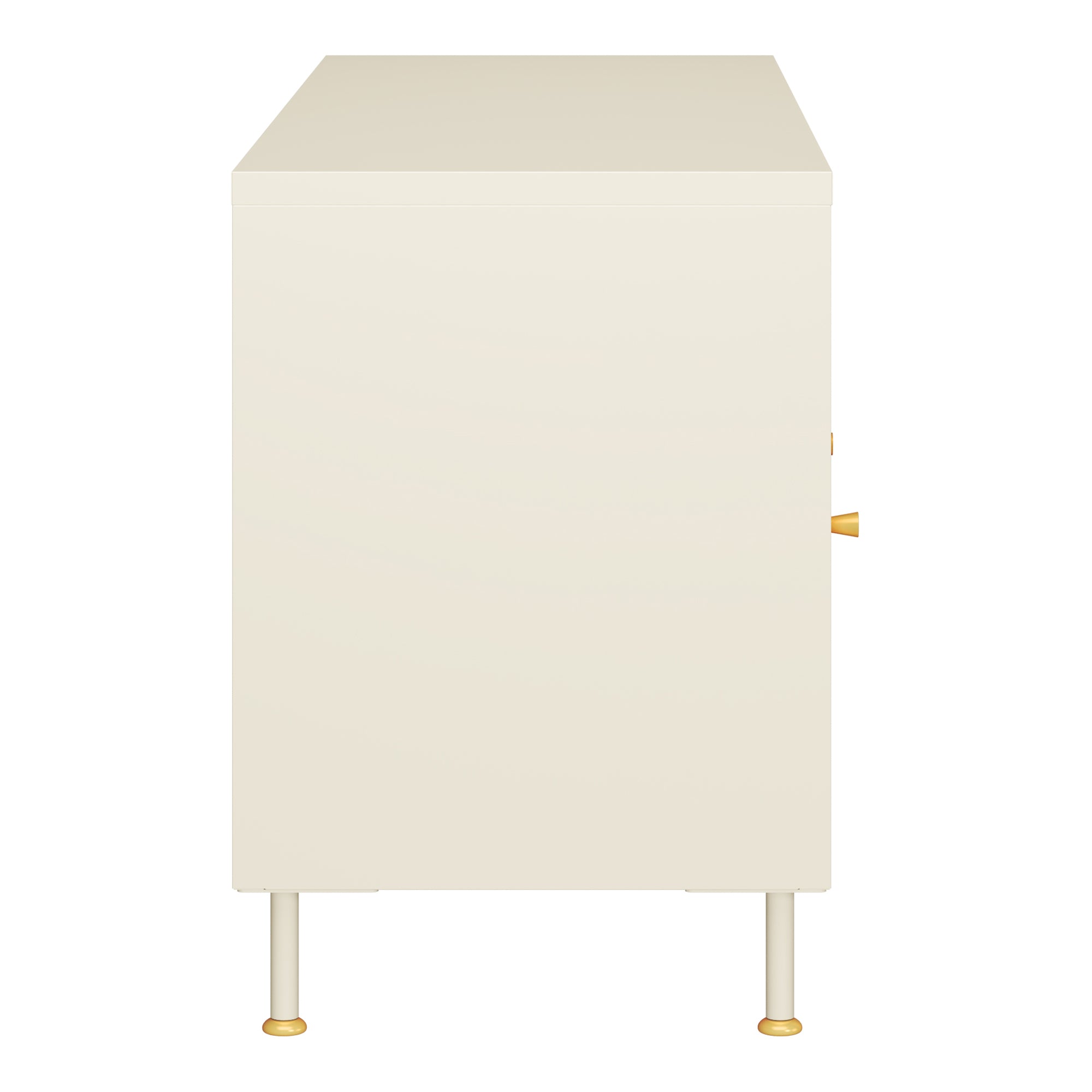 La surface généreuse du meuble bas offre suffisamment d’espace pour votre téléviseur. De plus, ce meuble bien pensé dispose de trois portes d’armoire avec fermeture magnétique, qui s’ouvrent sans effort.