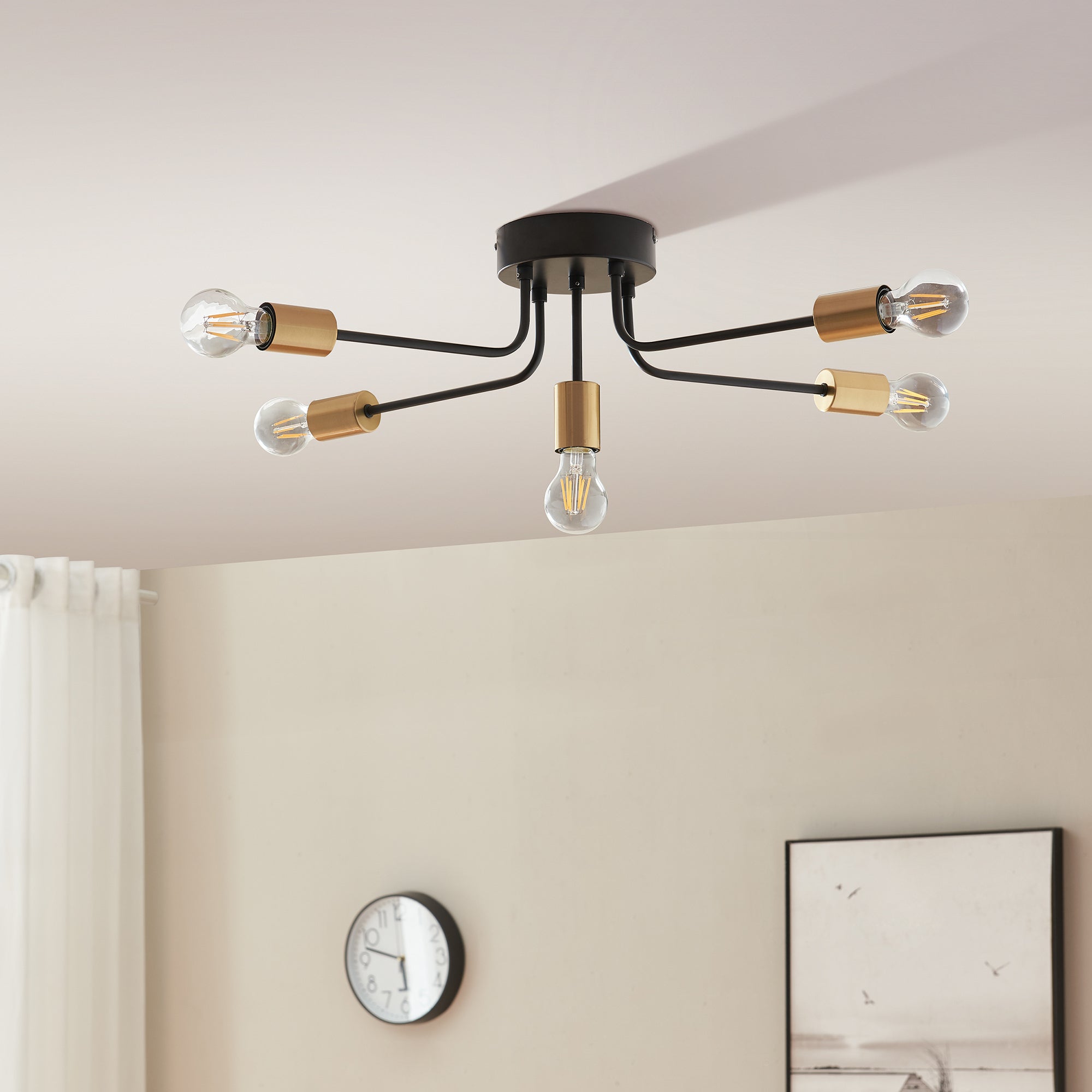 Le plafonnier dispose de cinq bras élégamment courbés, aux extrémités desquels des douilles au design harmonieux s’intègrent parfaitement. Chaque douille maintient solidement son ampoule respective et garantit un fonctionnement fiable.