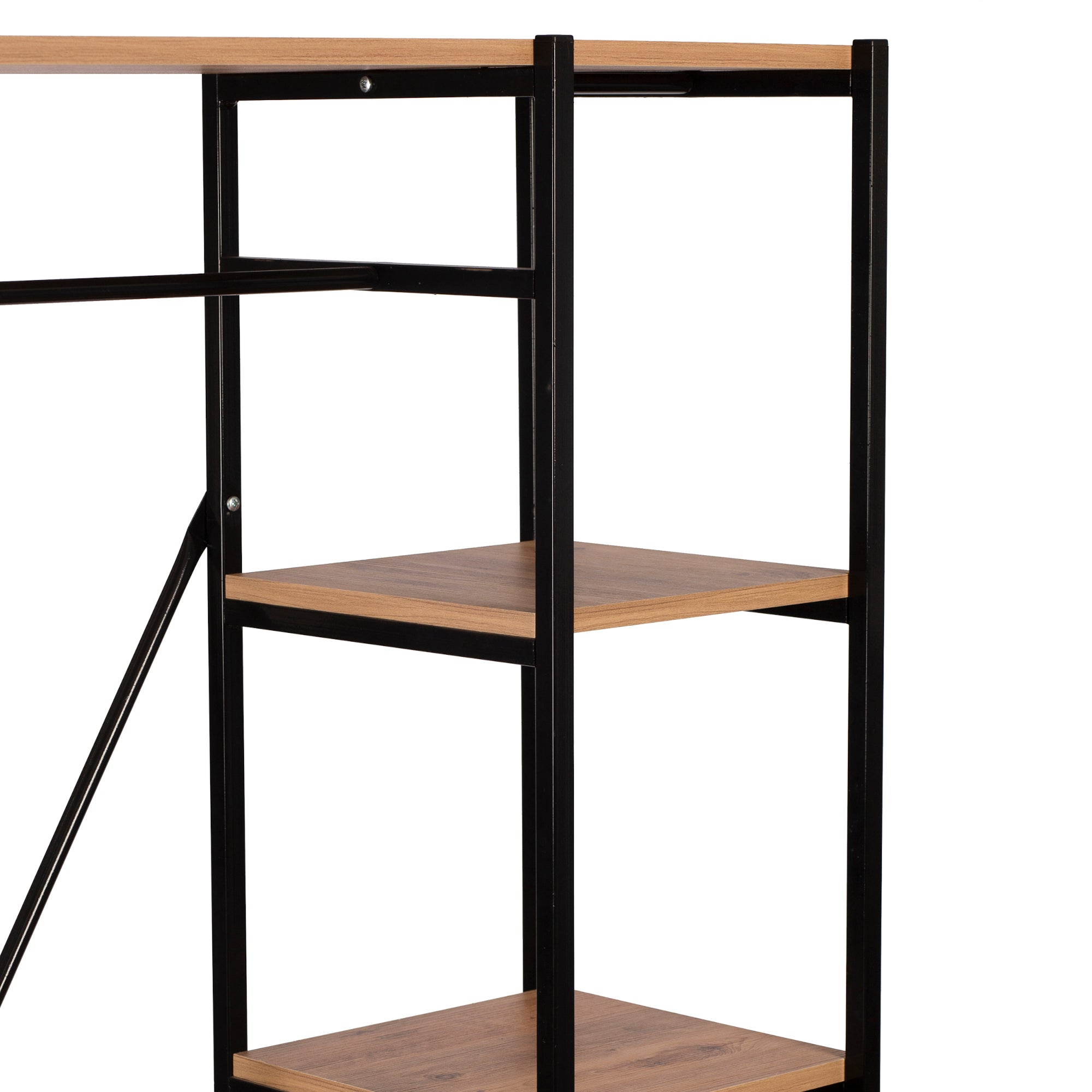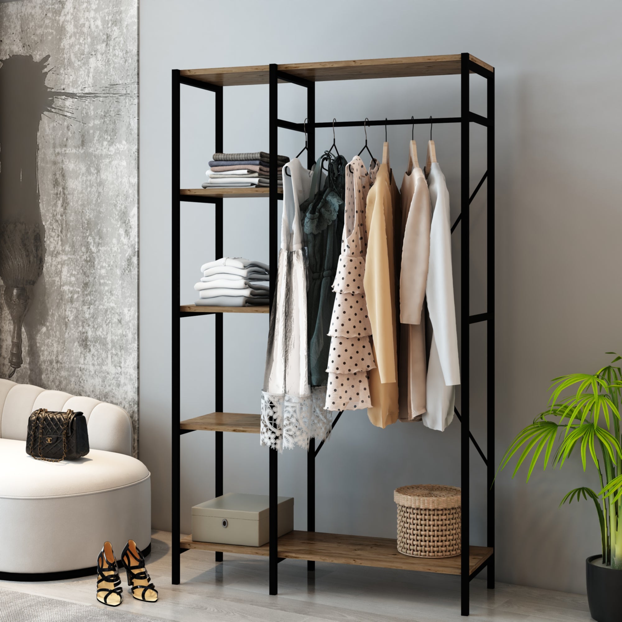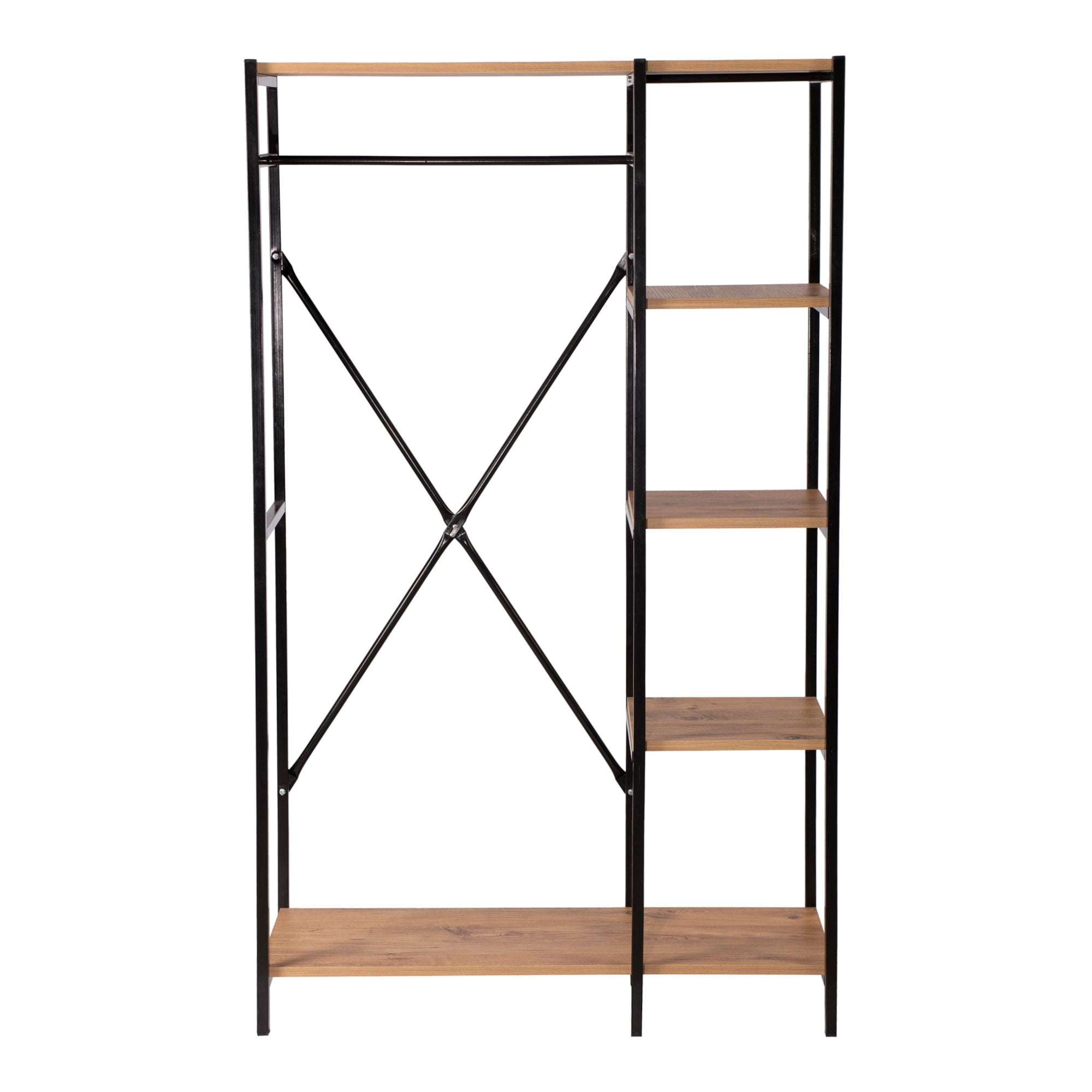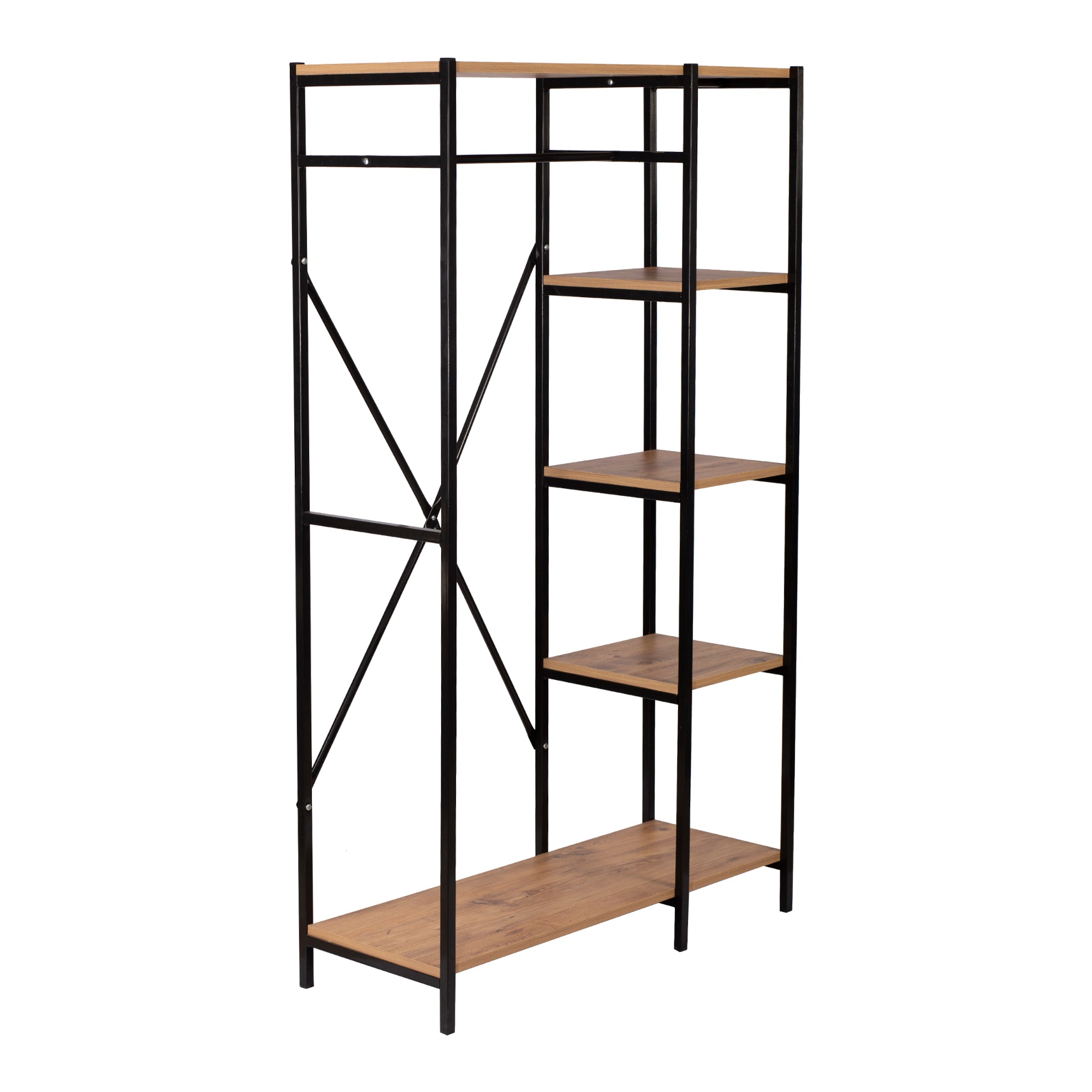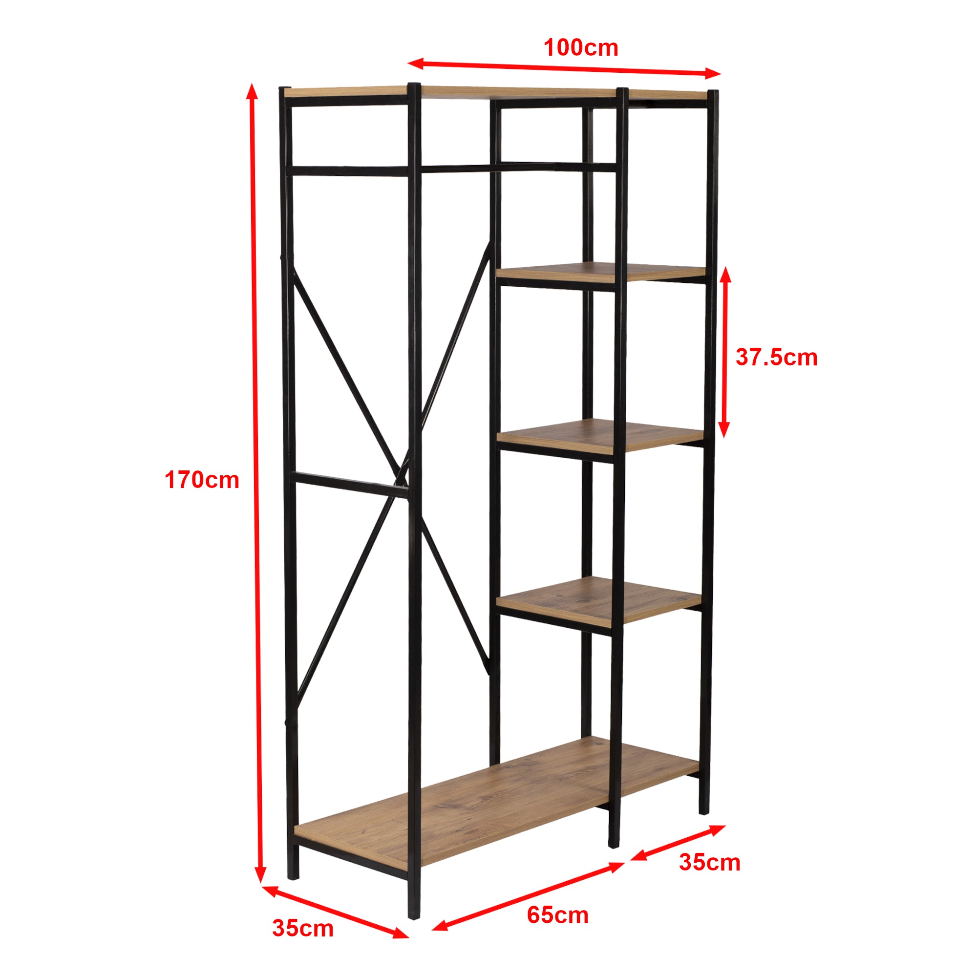 Le porte-vêtements pratique et stable se monte rapidement et facilement. Il dispose d'une tringle à vêtements et de cinq étagères au total pour tous vos objets. La grande étagère inférieure est idéale, par exemple, pour vos chaussures, tandis que celle du dessus peut servir de support pour chapeaux. Les trois petites étagères, quant à elles, sont parfaites pour des T-shirts ou des serviettes, par exemple.