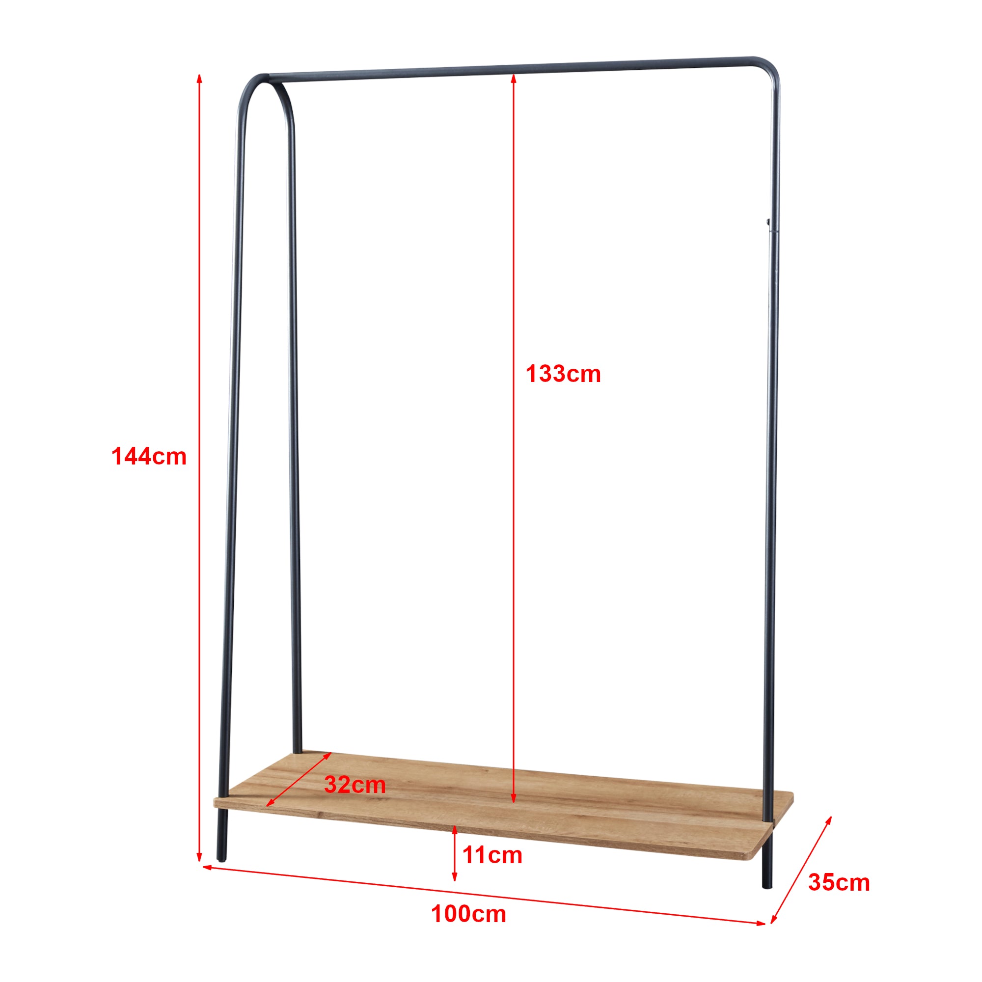 Le porte-vêtements pratique et stable se monte rapidement et facilement. Il dispose d'une tringle à vêtements et d'une étagère pour par exemple des chaussures ou d'autres objets.