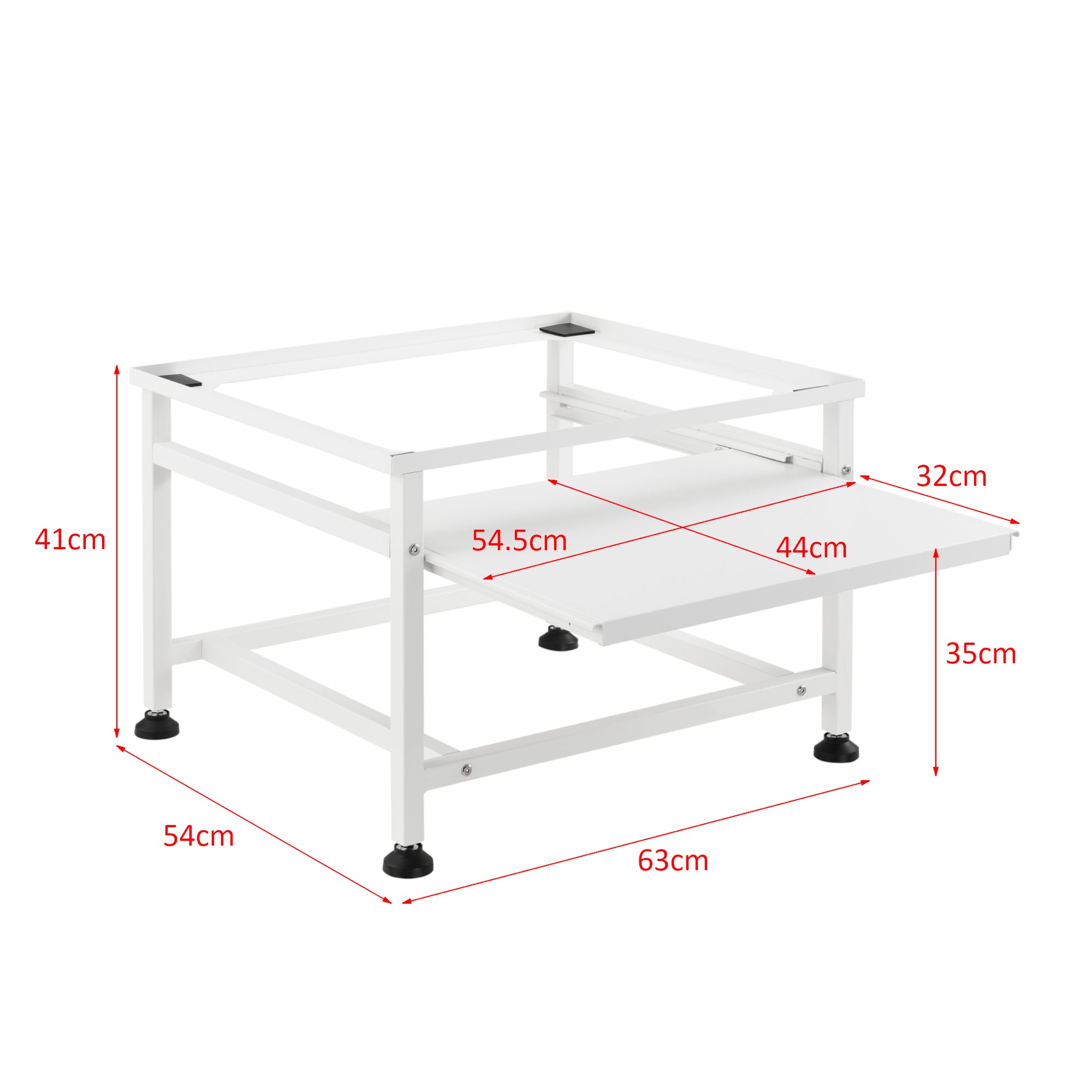 Le châssis stable et robuste permet de surélever la position de toutes les machines à laver et sèche-linge courants. Cela rend le chargement et le déchargement du linge plus confortables. Un cadre surélevé empêche que l’appareil ne tombe du socle. Les pieds assurent en outre une stabilité sûre.