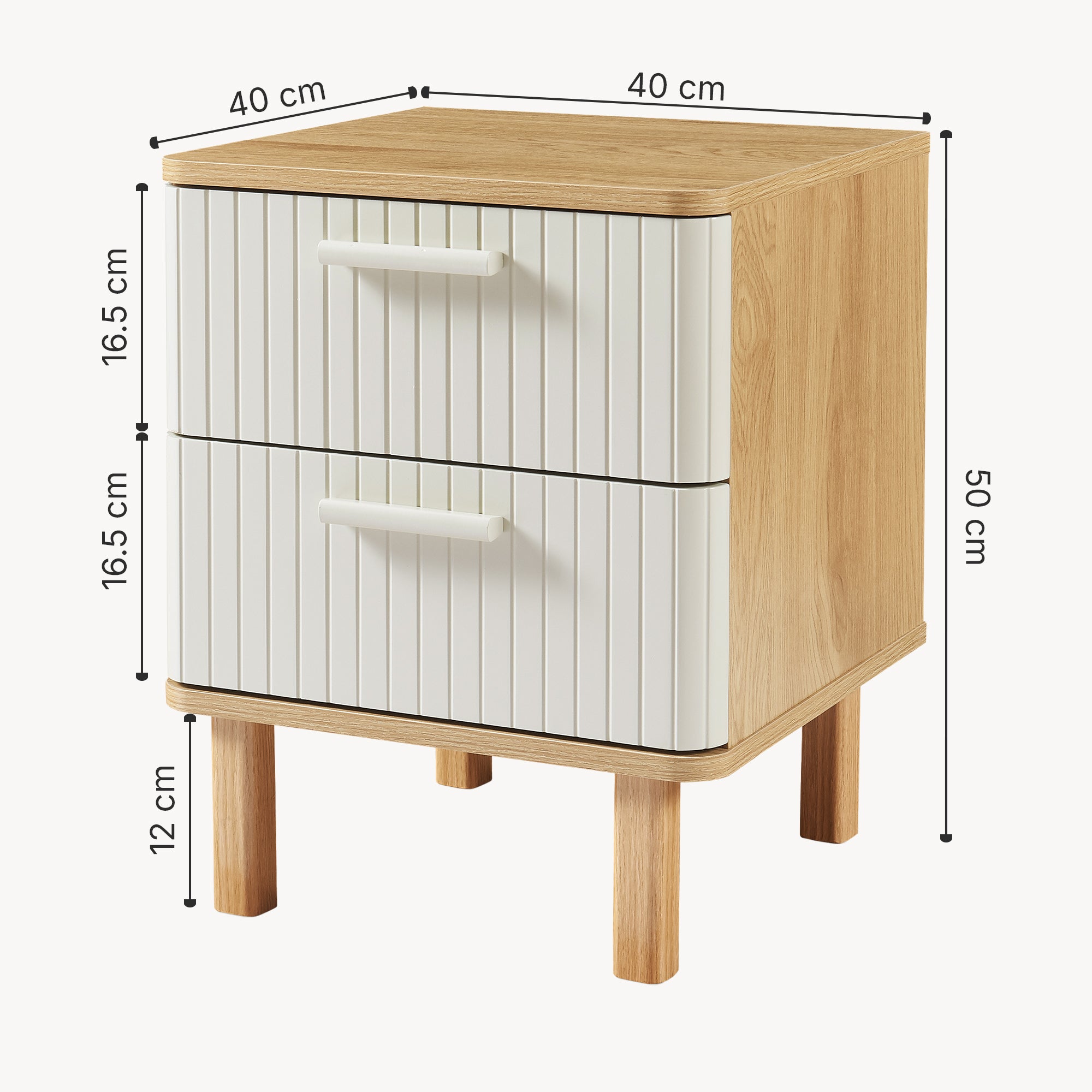 - Table de chevet avec deux tiroirs et poignées pratiques