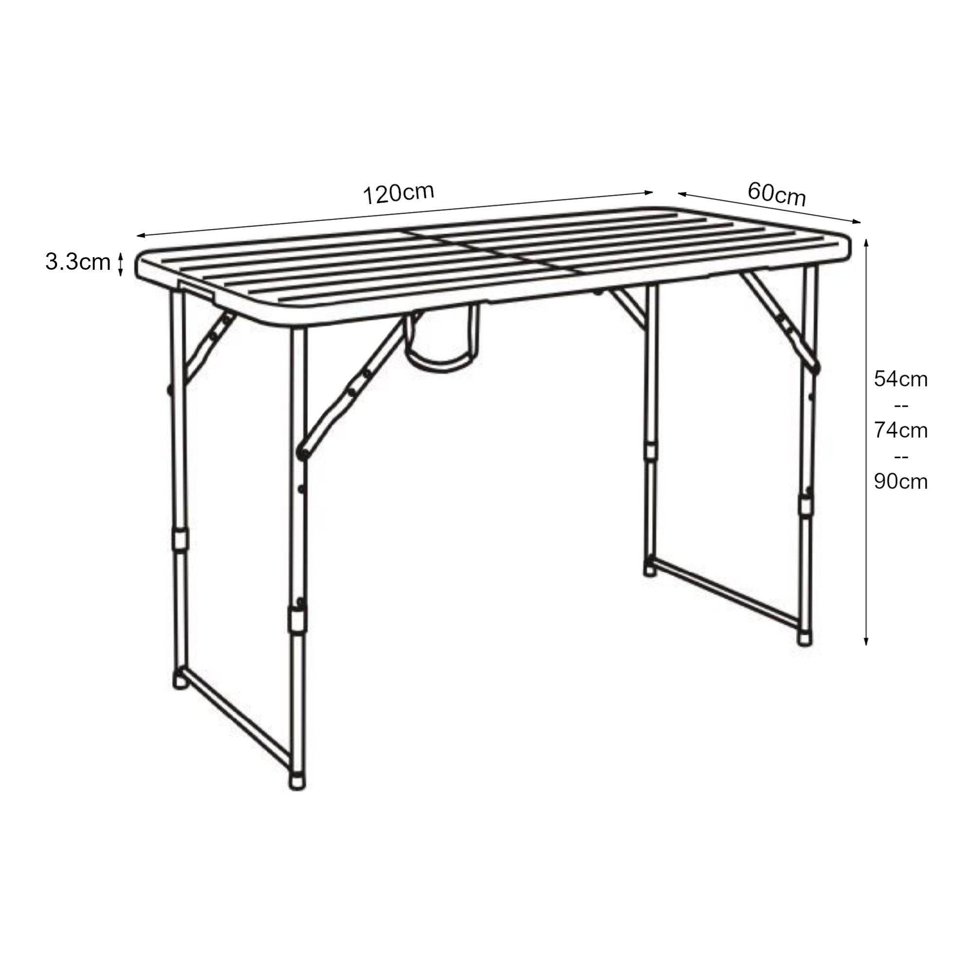 Polyvalente et robuste, notre table pliante à hauteur réglable est l'accessoire idéal pour vos activités en extérieur telles que les pique-niques et les festivals. Son montage rapide et sa poignée pratique facilite son transport, tandis que son piètement solide garantit stabilité et sécurité, même sur des surfaces irrégulières. Que ce soit pour profiter du jardin ou pour des événements en plein air, cette table de camping répondra à tous vos besoins.